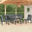 Elegantna in sodobna vrtna sedežna garnitura je popolna izbira za obedovanje ali sproščanje na vašem vrtu. Vremensko odporen material: PE ratan, znan tudi kot poli ratan, je odporen na vremenske vplive in enostaven za čiščenje. Na zunaj ostane lep dolgo časa. Ponuja odlično kakovost, priročnost in estetski videz. Trpežen in stabilen okvir: Prašno premazan jeklen okvir sedežne garniture zagotavlja trdnost in stabilnost.Udobna izkušnja sedenja: Naslonjalo za hrbet zagotavlja dodatno udobje pri sedenju na stolu. Poleg tega debelo podložene blazine zagotavljajo udobje med sedenjem.Modularna zasnova: Zunanja sedežna garnitura je prilagodljiva in enostavna za premikanje, zato jo lahko kombinirate z drugimi modularnimi segmenti iz spletne trgovine in ustvarite svoj osebni sestav vrtne sedežne garniture!Praktična miza: Robustna mizna plošča klubske mizice je odlična za odlaganje hrane, pijače in okrasnih stvari. Dobro je vedeti:Za čim lažjo montažo je vsakemu izdelku priložen priročnik.Opomba:Če želite, da vaše zunanje pohištvo ostane lepo, vam priporočamo, da ga zaščitite z vodoodporno prevleko.Klubska mizica:Material: DPC, prašno barvano jekloDimenzije: 55 x 55 x 31 cm (D x Š x V)Kotni stol:Barva: ČrnaMaterial: PE ratan, tekstilen, prašno lakirano jekloDimenzije: 62 x 62 x 68 cm (Š x G x V)Velikost sedeža: 55 x 55 cm (Š x G)Višina sedeža, merjena od tal: 31 cmMaksimalna nosilnost (na sedež): 110 kgEnojni stol:Barva: ČrnaMaterial: PE ratan, tekstilen, prašno lakirano jekloDimenzije: 55 x 62 x 68 cm (Š x G x V)Velikost sedeža: 55 x 55 cm (Š x G)Višina sedeža, merjena od tal: 31 cmMaksimalna nosilnost (na sedež): 110 kgBlazina:Barva blazin: Temno sivaMaterial prevlek za blazine: Tkanina (100 % poliester)Polnilo sedežne blazine: PenaPolnilo hrbtne blazine: PP bombažDimenzije hrbtne blazine: 55 x 45 x 12 cm (D x Š x D)Dimenzije sedežne blazine: 55 x 55 x 3,5 cm (D x Š x D)Paket vsebuje:1 x Klubska mizica2 x Kotni stol3 x Enojni stol5 x Blazina za sedež7 x Hrbtna blazina Maksimalna teža na sedež: 110 kg. Bodite pozorni na tveganje odprtega ognja in druge vire močne toplote v bližini izdelka.