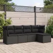 Ta vrtna sedežna garnitura je popoln dodatek za vaše dvorišče, teraso ali verando, saj zagotavlja udoben in vabljiv prostor za klepet z družino in prijatelji ali preprosto za sprostitev in uživanje na prostem. Vzdržljiv material: PE ratan, znan tudi kot poli ratan, je močan sintetični material, ki zahteva malo vzdrževanja in je videti kot naravni ratan. Je lahek, enostaven za čiščenje in se zaradi svoje vzdržljivosti in odpornosti na vremenske vplive pogosto uporablja za zunanje pohištvo.Udobno sedenje: Ta zunanji komplet pohištva z debelo oblazinjenimi blazinami zagotavlja udobno sedenje.Prevleko je mogoče odstraniti in oprati: Te sedežne blazine imajo odstranljive prevleke za lažje pranje in vzdrževanje.Modularna zasnova: Ta komplet zunanjega pohištva ima modularno zasnovo, zaradi česar je popolnoma prilagodljiv in enostaven za premikanje, tako da lahko zunanjo garnituro postavite kakor koli želite. Dobro je vedeti:Če želite, da vaše zunanje pohištvo ostane lepo, vam priporočamo, da ga zaščitite z vodoodporno prevleko.Maksimalna nosilnost (na sedež): 110 kgUV-odpornoPlastične nastavljive nogePotrebno sestavljanje: DaKotni sedež:Barva: ČrnaMaterial: PE ratan, jeklen okvir s prašnim premazomDimenzije: 62 x 62 x 69 cm (Š x G x V)Velikost sedeža: 55 x 55 cm (Š x G)Višina sedeža, merjena od tal: 37 cmSrednji sedež:Barva: ČrnaMaterial: PE ratan, jeklen okvir s prašnim premazomDimenzije: 55 x 62 x 69 cm (Š x G x V)Velikost sedeža: 55 x 55 cm (Š x G)Višina sedeža, merjena od tal: 37 cmVrtni stolček:Barva: ČrnaMaterial: PE ratan, jeklen okvir s prašnim premazomDimenzije: 55 x 55 x 37 cm (Š x G x V)Blazina:Barva: ČrnaMaterial prevleke: Tkanina (100 % poliester)Polnilo sedežne blazine: PenaPolnilo hrbtne blazine: bombažna vlaknaDimenzije sedežne blazine: 55 x 55 x 3 cm (Š x G x D)Dimenzije hrbtne blazine: 55 x 45 x 13 cm (D x Š x D) Paket vsebuje:1 x Vrtni stolček2 x Kotni sedež2 x Sredinski sedež6 x Blazina za hrbet5 x Sedežna blazina s snemljivo pralno prevleko