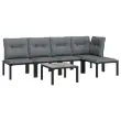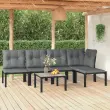 Elegantna in sodobna vrtna sedežna garnitura je popolna izbira za obedovanje ali sproščanje na vašem vrtu. Vremensko odporen material: PE ratan, znan tudi kot poli ratan, je odporen na vremenske vplive in enostaven za čiščenje. Na zunaj ostane lep dolgo časa. Ponuja odlično kakovost, priročnost in estetski videz. Trpežen in stabilen okvir: Prašno premazan jeklen okvir sedežne garniture zagotavlja trdnost in stabilnost.Udobna izkušnja sedenja: Naslonjalo za hrbet zagotavlja dodatno udobje pri sedenju na stolu. Poleg tega debelo podložene blazine zagotavljajo udobje med sedenjem.Modularna zasnova: Zunanja sedežna garnitura je prilagodljiva in enostavna za premikanje, zato jo lahko kombinirate z drugimi modularnimi segmenti iz spletne trgovine in ustvarite svoj osebni sestav vrtne sedežne garniture!Praktična miza: Robustna mizna plošča klubske mizice je odlična za odlaganje hrane, pijače in okrasnih stvari.Praktičen stolček za noge: Stolček za noge je primeren za počitek nog in sprostitev, hkrati pa vam nudi dodaten sedež na prostem. Dobro je vedeti:Za čim lažjo montažo je vsakemu izdelku priložen priročnik.Opomba:Če želite, da vaše zunanje pohištvo ostane lepo, vam priporočamo, da ga zaščitite z vodoodporno prevleko.Klubska mizica:Material: DPC, prašno barvano jekloDimenzije: 55 x 55 x 31 cm (D x Š x V)Kotni stol:Barva: ČrnaMaterial: PE ratan, tekstilen, prašno lakirano jekloDimenzije: 62 x 62 x 68 cm (Š x G x V)Velikost sedeža: 55 x 55 cm (Š x G)Višina sedeža, merjena od tal: 31 cmMaksimalna nosilnost: 110 kgEnojni stol:Barva: ČrnaMaterial: PE ratan, tekstilen, prašno lakirano jekloDimenzije: 55 x 62 x 68 cm (Š x G x V)Velikost sedeža: 55 x 55 cm (Š x G)Višina sedeža, merjena od tal: 31 cmMaksimalna nosilnost (na sedež): 110 kgStolček za noge:Barva: ČrnaMaterial: PE ratan, tekstilen, prašno lakirano jekloDimenzije: 55 x 55 x 34,5 cm (Š x G x V)Velikost sedeža: 55 x 55 cm (Š x G)Višina sedeža, merjena od tal: 31 cmMaksimalna nosilnost: 110 kgBlazina:Barva blazin: Temno sivaMaterial prevlek za blazine: Tkanina (100 % poliester)Polnilo sedežne blazine: PenaPolnilo hrbtne blazine: PP bombažDimenzije hrbtne blazine: 55 x 45 x 12 cm (D x Š x D)Dimenzije sedežne blazine: 55 x 55 x 3,5 cm (D x Š x D)Paket vsebuje:1 x Klubska mizica1 x Kotni stol3 x Enojni stol1 x Stolček za noge5 x Blazina za sedež5 x Blazina za hrbet Maksimalna teža na sedež: 110 kg. Bodite pozorni na tveganje odprtega ognja in druge vire močne toplote v bližini izdelka.