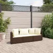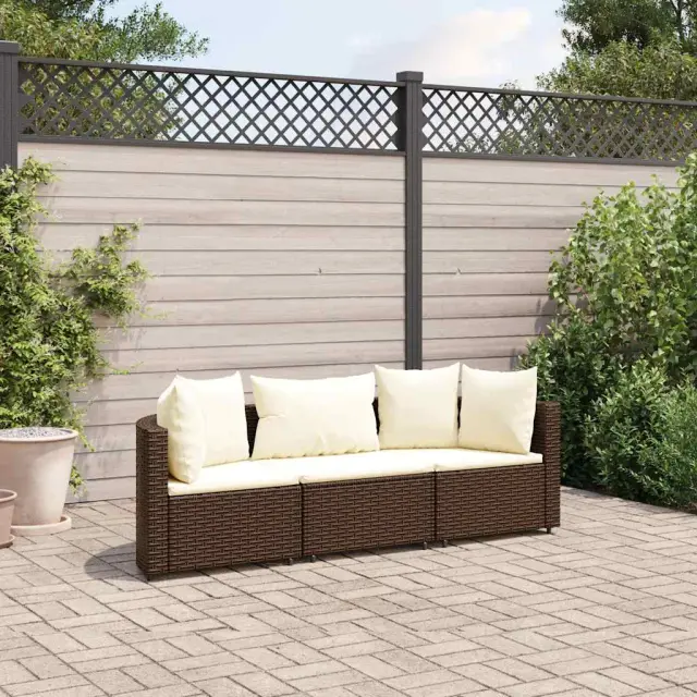Ta vrtna sedežna garnitura je popoln dodatek za vaše dvorišče, teraso ali verando, saj zagotavlja udoben in vabljiv prostor za klepet z družino in prijatelji ali preprosto za sprostitev in uživanje na prostem. Vzdržljiv material: PE ratan, znan tudi kot poli ratan, je močan sintetični material, ki zahteva malo vzdrževanja in je videti kot naravni ratan. Je lahek, enostaven za čiščenje in se zaradi svoje vzdržljivosti in odpornosti na vremenske vplive pogosto uporablja za zunanje pohištvo.Robusten in stabilen okvir: Jeklen okvir s prašnim premazom je močan, stabilen, trpežen ter odporen na korozijo in slabe vremenske razmere, kar zagotavlja dolgotrajno delovanje.Modularna zasnova: Ta komplet zunanjega pohištva ima modularno zasnovo, zaradi česar je popolnoma prilagodljiv in enostaven za premikanje, tako da lahko zunanjo garnituro postavite kakor koli želite.Udobno sedenje: To zunanje pohištvo z debelo oblazinjenimi blazinami zagotavlja udobno sedenje. Dobro je vedeti:Če želite, da vaše zunanje pohištvo ostane lepo, vam priporočamo, da ga zaščitite z vodoodporno prevleko.Maksimalna nosilnost (na sedež): 110 kgUV-odpornoPotrebno sestavljanje: DaKotni sedež:Barva: RjavaMaterial: PE ratan, jeklen okvir s prašnim premazomDimenzije: 63 x 63 x 57,5 cm (Š x G x V)Velikost sedeža: 55 x 55 cm (Š x G)Višina sedeža, merjena od tal: 31 cmSrednji sedež:Barva: RjavaMaterial: PE ratan, jeklen okvir s prašnim premazomDimenzije: 63 x 63 x 57,5 cm (Š x G x V)Velikost sedeža: 63 x 55 cm (Š x G)Višina sedeža, merjena od tal: 31 cmNastavljive nogeBlazina:Barva: Kremno belaMaterial prevleke: Tkanina (100 % poliester)Polnilo sedežne blazine: PenaPolnilo hrbtne blazine: bombažna vlaknaDimenzije sedežne blazine: 55/63 x 55 x 3 cm (Š x G x D)Dimenzije hrbtne blazine (L): 68 x 37 cm (Š x G)Dimenzije hrbtne blazine (S): 45 x 37 cm (Š x G) Paket vsebuje:2 x Kotni sedež1 x Sredinski sedež3 x Blazina za sedež5 x Blazina za hrbet Največ 110 kg na sedež.