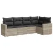 Seti vrtnega pohištva - Vrtna garnitura - Vrtni pohištvo set 5-delna z blazinami siv poli ratan