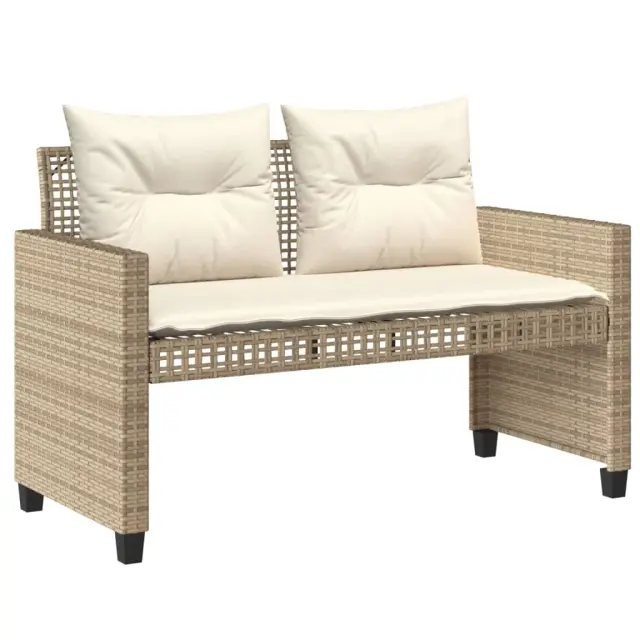 Ta vrtna sedežna garnitura je popoln dodatek za vaše dvorišče, teraso ali verando, saj zagotavlja udoben in vabljiv prostor za klepet z družino in prijatelji ali preprosto za sprostitev in uživanje na prostem. Vzdržljiv material: PE ratan, znan tudi kot poli ratan, je močan sintetični material, ki zahteva malo vzdrževanja in je videti kot naravni ratan. Je lahek, enostaven za čiščenje in se zaradi svoje vzdržljivosti in odpornosti na vremenske vplive pogosto uporablja za zunanje pohištvo.Nastavljiva mizna plošča: Z dvigom mizne plošče lahko mizo povišate, s čimer se zunanja klubska mizica spremeni v jedilno mizo. Popolna je za sprejemanje gostov ali uživanje v obrokih na prostem.Udobno sedenje: Zunanje pohištvo z debelo oblazinjenimi blazinami zagotavlja udobno sedenje.Prevleko je mogoče odstraniti in oprati: Te sedežne blazine imajo odstranljive prevleke za lažje pranje in vzdrževanje.Steklena mizna plošča: Površina zunanje mize je izdelana iz močnega in trpežnega kaljenega stekla, kar omogoča enostavno čiščenje z vlažno krpo in vašemu zunanjemu prostoru doda pridih elegance. Dobro je vedeti:Če želite, da vaše zunanje pohištvo ostane lepo, vam priporočamo, da ga zaščitite z vodoodporno prevleko.Maksimalna nosilnost (na sedež): 110 kgUV-odpornoPotrebno sestavljanje: DaVrtna klop:Barva: BežMaterial: PE ratan, jeklen okvir s prašnim premazomDimenzije: 122 x 57 x 79 cm (Š x G x V)Velikost sedeža: 110 x 53 cm (Š x G)Višina sedeža od tal: 45 cmVišina naslonjala za roke, merjena od tal: 62 cmVrtna miza:Barva: BežMaterial: PE ratan, jeklo s prašnim premazom, kaljeno stekloDimenzije: 90 x 50 x 50/72 cm (D x Š x V)Stolček za noge:Barva: BežMaterial: PE ratan, jeklen okvir s prašnim premazomDimenzije: 50 x 50 x 35 cm (Š x G x V)Blazina:Barva: Kremno belaMaterial prevleke: Tkanina (100 % poliester)Polnilo sedežne blazine: PenaPolnilo hrbtne blazine: bombažna vlaknaDimenzije sedeža klopi: 110 x 53 x 3 cm (Š x G x D)Dimenzije hrbtne blazine za klop: 55 x 45 x 10 cm (Š x G x D)Dimenzije blazine stolčka za noge: 50 x 50 x 3 cm (Š x G x D)Paket vsebuje:1 x Vrtna klop1 x Vrtna miza2 x Stolček za noge2 x Blazina za hrbet6 x Sedežna blazina s snemljivo pralno prevleko Največ 110 kg na sedež. Zavedajte se nevarnosti odprtega ognja in drugih virov močne vročine v bližini izdelka.