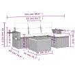 Ta vrtna sedežna garnitura je popoln dodatek za vaše dvorišče, teraso ali verando, saj zagotavlja udoben in vabljiv prostor za klepet z družino in prijatelji ali preprosto za sprostitev in uživanje na prostem. Vzdržljiv material: PE ratan, znan tudi kot poli ratan, je močan sintetični material, ki zahteva malo vzdrževanja in je videti kot naravni ratan. Je lahek, enostaven za čiščenje in se zaradi svoje vzdržljivosti in odpornosti na vremenske vplive pogosto uporablja za zunanje pohištvo.Funkcija shranjevanja z vodoodporno vrečo: Vsak vrtni sedež ima prostor za shranjevanje pod sedežem, skupaj z vodoodporno vrečo za shranjevanje blazin, igrač in drugih predmetov. Notranje vreče imajo zgornjo prevleko in jih je mogoče s pomočjo primenjal varno pritrditi na sedeže za dodatno varnost.Stabilna mizna plošča, ki je enostavna za čiščenje: Ta vrtna miza ima ploščo iz akacijevega lesa, ki je čvrsta, vzdržljiva in jo je enostavno čistiti z vlažno krpo.Priročna stranska mizica: To zunanje pohištvo ima zložljive stranske mizice s pnevmatsko vzmetjo na naslonjalih za roke, ki zagotavljajo priročen prostor za shranjevanje potrebščin na dosegu roke.Modularna zasnova: Ta komplet zunanjega pohištva ima modularno zasnovo, zaradi česar je popolnoma prilagodljiv in enostaven za premikanje, tako da lahko zunanjo garnituro postavite kakor koli želite. Dobro je vedeti:Če želite, da vaše zunanje pohištvo ostane lepo, vam priporočamo, da ga zaščitite z vodoodporno prevleko.Maksimalna nosilnost (na sedež): 110 kgUV-odpornoPotrebno sestavljanje: DaSrednji sedež:Barva: ČrnaMaterial: PE ratan, jeklen okvir s prašnim premazomDimenzije: 55 x 62 x 69 cm (Š x G x V)Velikost sedeža: 55 x 55 cm (Š x G)Višina sedeža, merjena od tal: 37 cmKavč z naslonjali za roke:Barva: ČrnaMaterial: PE ratan, jeklen okvir s prašnim premazomDimenzije: 62 x 62 x 69 cm (Š x G x V)Velikost sedeža: 55 x 55 cm (Š x G)Višina sedeža, merjena od tal: 37 cmVišina naslonjal za roke od tal: 55 cmStolček za noge:Barva: ČrnaMaterial: PE ratan, jeklen okvir s prašnim premazomDimenzije: 55 x 55 x 37 cm (Š x G x V)Velikost sedeža: 55 x 55 cm (Š x G)Višina sedeža, merjena od tal: 37 cmMiza:Barva: ČrnaMaterial: PE ratan, prašno premazano jeklo, trden akacijev les z oljnim premazomDimenzije: 55 x 55 x 37 cm (D x Š x V)Blazina:Barva: Črna Material prevleke: Tkanina (100 % poliester)Polnilo sedežne blazine: PenaPolnilo hrbtne blazine: bombažna vlaknaDimenzije sedežne blazine: 55 x 55 x 3 cm (Š x G x D)Dimenzije hrbtne blazine: 55 x 45 x 13 cm (D x Š x D)Paket vsebuje:1 x Srednji kavč s funkcijo shranjevanja z vodoodporno vrečo2 x Kavč s funkcijo shranjevanja z vodoodporno vrečo1 x Stolček za noge s funkcijo shranjevanja z vodoodporno vrečo1 x Vrtna miza3 x Blazina za hrbet4 x Sedežna blazina s snemljivo in pralno prevleko