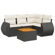 Seti vrtnega pohištva - Vrtna garnitura - Vrtni pohištvo set 5-delna z blazinami črn poli ratan