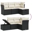 Ta vrtna sedežna garnitura je popoln dodatek za vaše dvorišče, teraso ali verando, saj zagotavlja udoben in vabljiv prostor za klepet z družino in prijatelji ali preprosto za sprostitev in uživanje na prostem. Vzdržljiv material: PE ratan, znan tudi kot poli ratan, je močan sintetični material, ki zahteva malo vzdrževanja in je videti kot naravni ratan. Je lahek, enostaven za čiščenje in se zaradi svoje vzdržljivosti in odpornosti na vremenske vplive pogosto uporablja za zunanje pohištvo.Udobno sedenje: To zunanje pohištvo z debelo oblazinjenimi blazinami zagotavlja udobno sedenje.Prevleko je mogoče odstraniti in oprati: Te sedežne blazine imajo odstranljive prevleke za lažje pranje in vzdrževanje.Robusten in stabilen okvir: Prašno barvan jekleni okvir zagotavlja, da je vrtno pohištvo močno in stabilno za vsakodnevno uporabo na prostem.Modularna zasnova: Ta komplet zunanjega pohištva ima modularno zasnovo, zaradi česar je popolnoma prilagodljiv in enostaven za premikanje, tako da lahko zunanjo garnituro postavite kakor koli želite. Dobro je vedeti:Če želite, da vaše zunanje pohištvo ostane lepo, vam priporočamo, da ga zaščitite z vodoodporno prevleko.Maksimalna nosilnost (na sedež): 110 kgUV-odpornoPotrebno sestavljanje: DaSrednji sedež:Barva: ČrnaMaterial: PE ratan, jeklen okvir s prašnim premazomDimenzije: 55 x 62 x 69 cm (Š x G x V)Velikost sedeža: 55 x 55 cm (Š x G)Višina sedeža, merjena od tal: 37 cmKavč z naslonjali za roke:Barva: ČrnaMaterial: PE ratan, jeklen okvir s prašnim premazomDimenzije: 61,5 x 62 x 69 cm (Š x G x V)Velikost sedeža: 55 x 55 cm (Š x G)Višina sedeža, merjena od tal: 37 cmVišina naslonjal za roke od tal: 55 cmStolček za noge:Barva: ČrnaMaterial: PE ratan, jeklen okvir s prašnim premazomDimenzije: 55 x 55 x 37 cm (Š x G x V)Velikost sedeža: 55 x 55 cm (Š x G)Višina sedeža, merjena od tal: 37 cmBlazina:Barva: Kremno belaMaterial prevleke: Tkanina (100 % poliester)Polnilo sedežne blazine: PenaPolnilo hrbtne blazine: bombažna vlaknaDimenzije sedežne blazine: 55 x 55 x 3 cm (Š x G x D)Dimenzije hrbtne blazine: 55 x 45 x 13 cm (D x Š x D)Paket vsebuje:1 x Sredinski sedež2 x Kavč z naslonjali za roke1 x Stolček za noge4 x Blazina za hrbet4 x Sedežna blazina s snemljivo in pralno prevleko
