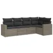 Seti vrtnega pohištva - Vrtna garnitura - Vrtni pohištvo set 5-delna z blazinami siv poli ratan