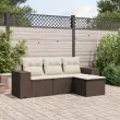 Ta vrtna sedežna garnitura je popoln dodatek za vaše dvorišče, teraso ali verando, saj zagotavlja udoben in vabljiv prostor za klepet z družino in prijatelji ali preprosto za sprostitev in uživanje na prostem. Vzdržljiv material: PE ratan, znan tudi kot poli ratan, je močan sintetični material, ki zahteva malo vzdrževanja in je videti kot naravni ratan. Je lahek, enostaven za čiščenje in se zaradi svoje vzdržljivosti in odpornosti na vremenske vplive pogosto uporablja za zunanje pohištvo.Udobno sedenje: To zunanje pohištvo z debelo oblazinjenimi blazinami zagotavlja udobno sedenje.Prevleko je mogoče odstraniti in oprati: Te sedežne blazine imajo odstranljive prevleke za lažje pranje in vzdrževanje.Modularna zasnova: Ta komplet zunanjega pohištva ima modularno zasnovo, zaradi česar je popolnoma prilagodljiv in enostaven za premikanje, tako da lahko zunanjo garnituro postavite kakor koli želite. Dobro je vedeti:Če želite, da vaše zunanje pohištvo ostane lepo, vam priporočamo, da ga zaščitite z vodoodporno prevleko.Maksimalna nosilnost (na sedež): 110 kgUV-odpornoPlastične nastavljive nogePotrebno sestavljanje: DaSrednji sedež:Barva: RjavaMaterial: PE ratan, jeklen okvir s prašnim premazomDimenzije: 55 x 62 x 69 cm (Š x G x V)Velikost sedeža: 55 x 55 cm (Š x G)Višina sedeža, merjena od tal: 37 cmKavč z naslonjali za roke:Barva: RjavaMaterial: PE ratan, jeklen okvir s prašnim premazomDimenzije: 83 x 62 x 69 cm (Š x G x V)Velikost sedeža: 55 x 55 cm (Š x G)Višina sedeža, merjena od tal: 37 cmVišina naslonjal za roke od tal: 55 cmŠirina naslona za roke: 27,5 cmStolček za noge:Barva: RjavaMaterial: PE ratan, jeklen okvir s prašnim premazomDimenzije: 55 x 55 x 37 cm (Š x G x V)Velikost sedeža: 55 x 55 cm (Š x G)Višina sedeža, merjena od tal: 37 cmBlazina:Barva: Kremno belaMaterial prevleke: Tkanina (100 % poliester)Polnilo sedežne blazine: PenaPolnilo hrbtne blazine: bombažna vlaknaDimenzije sedežne blazine: 55 x 55 x 3 cm (Š x G x D)Dimenzije hrbtne blazine: 55 x 45 x 13 cm (D x Š x D)Paket vsebuje:1 x Sredinski sedež2 x Kavč z naslonjali za roke1 x Stolček za noge3 x Blazina za hrbet4 x Sedežna blazina s snemljivo in pralno prevleko