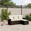 Seti vrtnega pohištva - Vrtna garnitura - Vrtni pohištvo set 4-delna z blazinami rjav poli ratan