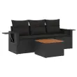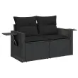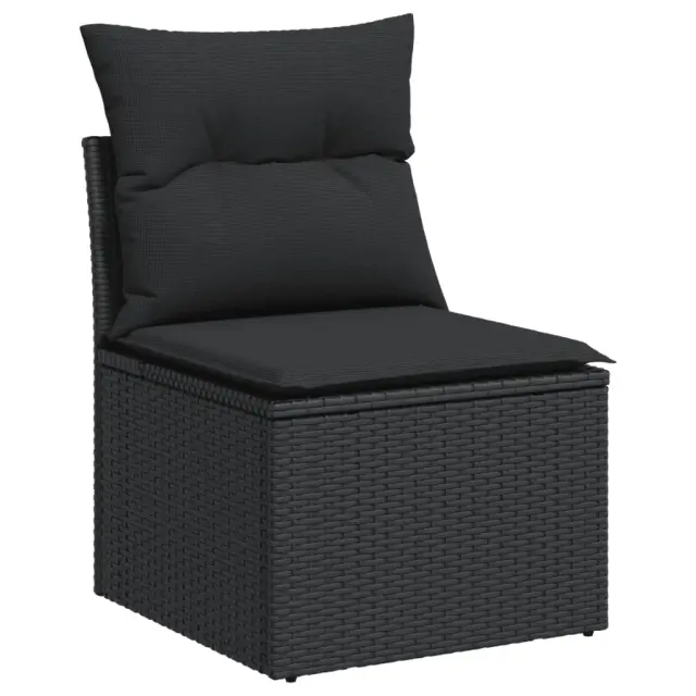 Ta vrtna sedežna garnitura je popoln dodatek za vaše dvorišče, teraso ali verando, saj zagotavlja udoben in vabljiv prostor za klepet z družino in prijatelji ali preprosto za sprostitev in uživanje na prostem. Vzdržljiv material: PE ratan, znan tudi kot poli ratan, je močan sintetični material, ki zahteva malo vzdrževanja in je videti kot naravni ratan. Je lahek, enostaven za čiščenje in se zaradi svoje vzdržljivosti in odpornosti na vremenske vplive pogosto uporablja za zunanje pohištvo.Priročna stranska mizica: To zunanje pohištvo ima zložljivo stransko mizico s pnevmatsko vzmetjo na naslonjalih za roke, ki zagotavlja priročen prostor za shranjevanje potrebščin na dosegu roke.Stabilna mizna plošča, ki je enostavna za čiščenje: Ta vrtna miza ima ploščo iz akacijevega lesa, ki je čvrsta, vzdržljiva in jo je enostavno čistiti z vlažno krpo.Prevleko je mogoče odstraniti in oprati: Te sedežne blazine imajo odstranljive prevleke za lažje pranje in vzdrževanje.Modularna zasnova: Ta komplet zunanjega pohištva ima modularno zasnovo, zaradi česar je popolnoma prilagodljiv in enostaven za premikanje, tako da lahko zunanjo garnituro postavite kakor koli želite. Dobro je vedeti:Če želite, da vaše zunanje pohištvo ostane lepo, vam priporočamo, da ga zaščitite z vodoodporno prevleko.Maksimalna nosilnost (na sedež): 110 kgUV-odpornoPlastične nastavljive nogePotrebno sestavljanje: DaSrednji sedež:Barva: ČrnaMaterial: PE ratan, jeklen okvir s prašnim premazomDimenzije: 55 x 62 x 69 cm (Š x G x V)Velikost sedeža: 55 x 55 cm (Š x G)Višina sedeža, merjena od tal: 37 cmKavč z naslonjali za roke:Barva: ČrnaMaterial: PE ratan, jeklen okvir s prašnim premazomDimenzije: 62 x 62 x 69 cm (Š x G x V)Velikost sedeža: 55 x 55 cm (Š x G)Višina sedeža, merjena od tal: 37 cmVišina naslonjal za roke od tal: 55 cmVelikost stranske mizice: 25 x 23 cm (D x Š)Miza:Barva: ČrnaMaterial: PE ratan, prašno premazano jeklo, trden akacijev les z oljnim premazomDimenzije: 55 x 55 x 37 cm (D x Š x V)Blazina:Barva: ČrnaMaterial prevleke: Tkanina (100 % poliester)Polnilo sedežne blazine: PenaPolnilo hrbtne blazine: bombažna vlaknaDimenzije sedežne blazine: 55 x 55 x 3 cm (Š x G x D)Dimenzije hrbtne blazine: 55 x 45 x 13 cm (D x Š x D)Paket vsebuje:1 x Sredinski sedež2 x Kavč z naslonjali za roke1 x Vrtna miza3 x Blazina za hrbet6 x Sedežna blazina s snemljivo pralno prevleko