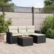 Ta vrtna sedežna garnitura je popoln dodatek za vaše dvorišče, teraso ali verando, saj zagotavlja udoben in vabljiv prostor za klepet z družino in prijatelji ali preprosto za sprostitev in uživanje na prostem. Vzdržljiv material: PE ratan, znan tudi kot poli ratan, je močan sintetični material, ki zahteva malo vzdrževanja in je videti kot naravni ratan. Je lahek, enostaven za čiščenje in se zaradi svoje vzdržljivosti in odpornosti na vremenske vplive pogosto uporablja za zunanje pohištvo.Udobno sedenje: To zunanje pohištvo z debelo oblazinjenimi blazinami zagotavlja udobno sedenje.Stabilna mizna plošča, ki je enostavna za čiščenje: Ta vrtna miza ima ploščo iz akacijevega lesa, ki je čvrsta, vzdržljiva in jo je enostavno čistiti z vlažno krpo.Prevleko je mogoče odstraniti in oprati: Te sedežne blazine imajo odstranljive prevleke za lažje pranje in vzdrževanje.Modularna zasnova: Ta komplet zunanjega pohištva ima modularno zasnovo, zaradi česar je popolnoma prilagodljiv in enostaven za premikanje, tako da lahko zunanjo garnituro postavite kakor koli želite. Dobro je vedeti:Če želite, da vaše zunanje pohištvo ostane lepo, vam priporočamo, da ga zaščitite z vodoodporno prevleko.Maksimalna nosilnost (na sedež): 110 kgUV-odpornoPlastične nastavljive nogePotrebno sestavljanje: DaKavč z naslonjali za roke:Barva: ČrnaMaterial: PE ratan, jeklen okvir s prašnim premazomDimenzije: 65,5 x 62 x 69 cm (Š x G x V)Velikost sedeža: 55 x 55 cm (Š x G)Višina sedeža, merjena od tal: 37 cmVišina naslonjal za roke od tal: 55 cmŠirina naslonjala za roke: 10 cmSrednji sedež:Barva: ČrnaMaterial: PE ratan, jeklen okvir s prašnim premazomDimenzije: 55 x 62 x 69 cm (Š x G x V)Velikost sedeža: 55 x 55 cm (Š x G)Višina sedeža, merjena od tal: 37 cmMiza:Barva: Črna in rjavaMaterial: PE ratan, prašno premazano jeklo, trden akacijev les z oljnim premazomDimenzije: 55 x 55 x 37 cm (D x Š x V)Stolček za noge:Barva: ČrnaMaterial: PE ratan, jeklen okvir s prašnim premazomDimenzije: 55 x 55 x 37 cm (Š x G x V)Blazina:Barva: Kremno belaMaterial prevleke: Tkanina (100 % poliester)Polnilo sedežne blazine: PenaPolnilo hrbtne blazine: bombažna vlaknaDimenzije sedežne blazine: 55 x 55 x 3 cm (Š x G x D)Dimenzije hrbtne blazine: 55 x 45 x 13 cm (D x Š x D)Paket vsebuje:1 x Vrtna miza2 x Kavč z naslonjali za roke1 x Sredinski kavč1 x Vrtni stolček za noge3 x Blazina za hrbet4 x Sedežna blazina s snemljivo in pralno prevleko