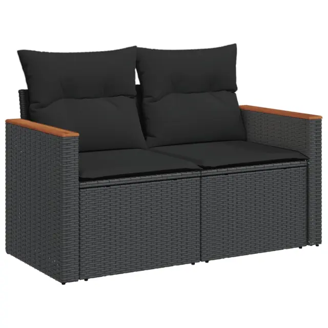 Ta vrtna sedežna garnitura je popoln dodatek za vaše dvorišče, teraso ali verando, saj zagotavlja udoben in vabljiv prostor za klepet z družino in prijatelji ali preprosto za sprostitev in uživanje na prostem. Vzdržljiv material: PE ratan, znan tudi kot poli ratan, je močan sintetični material, ki zahteva malo vzdrževanja in je videti kot naravni ratan. Je lahek, enostaven za čiščenje in se zaradi svoje vzdržljivosti in odpornosti na vremenske vplive pogosto uporablja za zunanje pohištvo.Stabilna mizna plošča, ki je enostavna za čiščenje: Ta vrtna miza ima ploščo iz akacijevega lesa, ki je čvrsta, vzdržljiva in jo je enostavno čistiti z vlažno krpo.Prevleko je mogoče odstraniti in oprati: Te sedežne blazine imajo odstranljive prevleke za lažje pranje in vzdrževanje.Robusten in stabilen okvir: Prašno barvan jekleni okvir zagotavlja, da je vrtno pohištvo močno in stabilno za vsakodnevno uporabo na prostem.Modularna zasnova: Ta komplet zunanjega pohištva ima modularno zasnovo, zaradi česar je popolnoma prilagodljiv in enostaven za premikanje, tako da lahko zunanjo garnituro postavite kakor koli želite. Dobro je vedeti:Če želite, da vaše zunanje pohištvo ostane lepo, vam priporočamo, da ga zaščitite z vodoodporno prevleko.Maksimalna nosilnost (na sedež): 110 kgUV-odpornoPotrebno sestavljanje: DaKotni sedež:Barva: ČrnaMaterial: PE ratan, jeklen okvir s prašnim premazomDimenzije: 62 x 62 x 69 cm (Š x G x V)Velikost sedeža: 55 x 55 cm (Š x G)Višina sedeža, merjena od tal: 37 cmSrednji sedež:Barva: ČrnaMaterial: PE ratan, jeklen okvir s prašnim premazomDimenzije: 55 x 62 x 69 cm (Š x G x V)Velikost sedeža: 55 x 55 cm (Š x G)Višina sedeža, merjena od tal: 37 cmKavč z naslonjali za roke:Barva: ČrnaMaterial: PE ratan, jeklen okvir s prašnim premazomDimenzije: 61,5 x 62 x 69 cm (Š x G x V)Velikost sedeža: 55 x 55 cm (Š x G)Višina sedeža, merjena od tal: 37 cmVišina naslonjal za roke od tal: 55 cmMiza:Barva: ČrnaMaterial: PE ratan, prašno premazano jeklo, trden akacijev les z oljnim premazomDimenzije: 55 x 55 x 37 cm (D x Š x V)Blazina:Barva: Črna Material prevleke: Tkanina (100 % poliester)Polnilo sedežne blazine: PenaPolnilo hrbtne blazine: bombažna vlaknaDimenzije sedežne blazine: 55 x 55 x 3 cm (Š x G x D)Dimenzije hrbtne blazine: 55 x 45 x 13 cm (D x Š x D)Paket vsebuje:1 x Kotni sedež1 x Sredinski sedež2 x Kavč z naslonjali za roke1 x Vrtna miza5 x Blazina za hrbet4 x Sedežna blazina s snemljivo in pralno prevleko