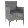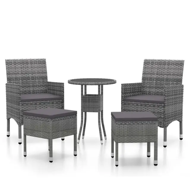 S to vrtno sedežno garnituro lahko ob bazen, na verando, teraso ali balkon dodate pridih modernega stila. Zunanja sedežna garnitura ima prašno premazan jeklen okvir, ki je oblečen v poli ratan. Mizna plošča je izdelana iz kaljenega stekla, zaradi česar je enostavna za čiščenje. Debelo podložena sedežna blazina stolu dodaja udobje. Opomba: Da bi podaljšali življenjsko dobo vašega zunanjega pohištva, vam priporočamo, da ga zaščitite z vodoodporno prevleko.Miza:Barva: SivaMaterial: Poli ratan, prašno premazano jeklo, kaljeno stekloDimenzije: 60 x 75 cm (premer x V)Debelina stekla: 5 mmZ zaščitno gumo za stekloStol in stolček:Barva PE ratana: SivaBarva blazine: Temno sivaMaterial: Poli ratan, jeklo s prašnim premazom, blago (100 % poliester)Dimenzije stola: 53 x 58 x 84 cm (Š x G x V)Velikost sedeža: 39/44,5 x 46 cm (Š x G)Višina sedeža, merjena od tal: 42 cmVišina naslonjala za roke, merjena od tal: 62/65 cmDimenzije stolčka: 41,5 x 41,5 x 42,5 cm (Š x G x V)Potrebno sestavljanje: DaPaket vsebuje:1 x Miza2 x Stol2 x Stolček4 x Blazina za sedež Maksimalna teža na sedež: 110 kg. Bodite pozorni na tveganje odprtega ognja in druge vire močne toplote v bližini izdelka.