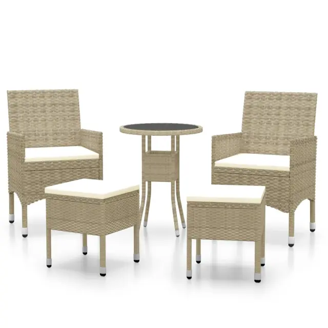 S to vrtno sedežno garnituro lahko ob bazen, na verando, teraso ali balkon dodate pridih modernega stila. Zunanja sedežna garnitura ima prašno premazan jeklen okvir, ki je oblečen v poli ratan. Mizna plošča je izdelana iz kaljenega stekla, zaradi česar je enostavna za čiščenje. Debelo podložena sedežna blazina stolu dodaja udobje. Opomba: Da bi podaljšali življenjsko dobo vašega zunanjega pohištva, vam priporočamo, da ga zaščitite z vodoodporno prevleko.Miza:Barva: BežMaterial: Poli ratan, prašno premazano jeklo, kaljeno stekloDimenzije: 60 x 75 cm (premer x V)Debelina stekla: 5 mmZ zaščitno gumo za stekloStol in stolček:Barva PE ratana: BežBarva blazin: Kremno belaMaterial: Poli ratan, jeklo s prašnim premazom, blago (100 % poliester)Dimenzije stola: 53 x 58 x 84 cm (Š x G x V)Velikost sedeža: 39/44,5 x 46 cm (Š x G)Višina sedeža, merjena od tal: 42 cmVišina naslonjala za roke, merjena od tal: 62/65 cmDimenzije stolčka: 41,5 x 41,5 x 42,5 cm (Š x G x V)Potrebno sestavljanje: DaPaket vsebuje:1 x Miza2 x Stol2 x Stolček4 x Blazina za sedež Maksimalna teža na sedež: 110 kg. Bodite pozorni na tveganje odprtega ognja in druge vire močne toplote v bližini izdelka.