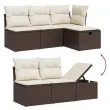 Ta vrtna sedežna garnitura je popoln dodatek za vaše dvorišče, teraso ali verando, saj zagotavlja udoben in vabljiv prostor za klepet z družino in prijatelji ali preprosto za sprostitev in uživanje na prostem. Vzdržljiv material: PE ratan, znan tudi kot poli ratan, je močan sintetični material, ki zahteva malo vzdrževanja in je videti kot naravni ratan. Je lahek, enostaven za čiščenje in se zaradi svoje vzdržljivosti in odpornosti na vremenske vplive pogosto uporablja za zunanje pohištvo.Udobno sedenje: To zunanje pohištvo z debelo oblazinjenimi blazinami zagotavlja udobno sedenje.Prevleko je mogoče odstraniti in oprati: Te sedežne blazine imajo odstranljive prevleke za lažje pranje in vzdrževanje.Robusten in stabilen okvir: Prašno barvan jekleni okvir zagotavlja, da je vrtno pohištvo močno in stabilno za vsakodnevno uporabo na prostem.Modularna zasnova: Ta komplet zunanjega pohištva ima modularno zasnovo, zaradi česar je popolnoma prilagodljiv in enostaven za premikanje, tako da lahko zunanjo garnituro postavite kakor koli želite. Dobro je vedeti:Če želite, da vaše zunanje pohištvo ostane lepo, vam priporočamo, da ga zaščitite z vodoodporno prevleko.Maksimalna nosilnost (na sedež): 110 kgUV-odpornoPotrebno sestavljanje: DaSrednji sedež:Barva: RjavaMaterial: PE ratan, jeklen okvir s prašnim premazomDimenzije: 55 x 62 x 69 cm (Š x G x V)Velikost sedeža: 55 x 55 cm (Š x G)Višina sedeža, merjena od tal: 37 cmKavč z naslonjali za roke:Barva: RjavaMaterial: PE ratan, jeklen okvir s prašnim premazomDimenzije: 83 x 62 x 69 cm (Š x G x V)Velikost sedeža: 55 x 55 cm (Š x G)Višina sedeža, merjena od tal: 37 cmVišina naslonjal za roke od tal: 55 cmStolček za noge:Barva: RjavaMaterial: PE ratan, jeklen okvir s prašnim premazomDimenzije: 55 x 55 x 37 cm (Š x G x V)Velikost sedeža: 55 x 55 cm (Š x G)Višina sedeža, merjena od tal: 37 cmBlazina:Barva: Kremno belaMaterial prevleke: Tkanina (100 % poliester)Polnilo sedežne blazine: PenaPolnilo hrbtne blazine: bombažna vlaknaDimenzije sedežne blazine: 55 x 55 x 3 cm (Š x G x D)Dimenzije hrbtne blazine: 55 x 45 x 13 cm (D x Š x D)Paket vsebuje:2 x Sredinski sedež2 x Kavč z naslonjali za roke1 x Stolček za noge5 x Blazina za hrbet5 x Sedežna blazina s snemljivo pralno prevleko