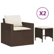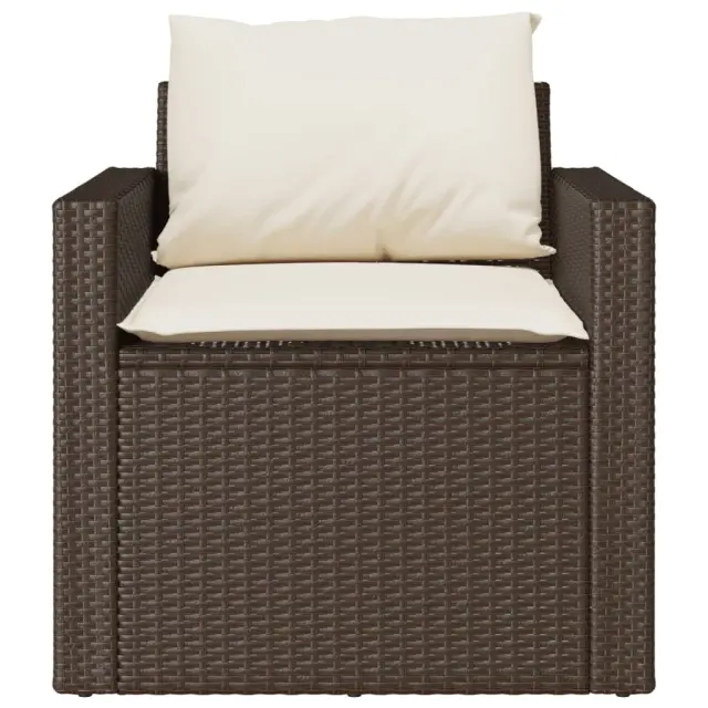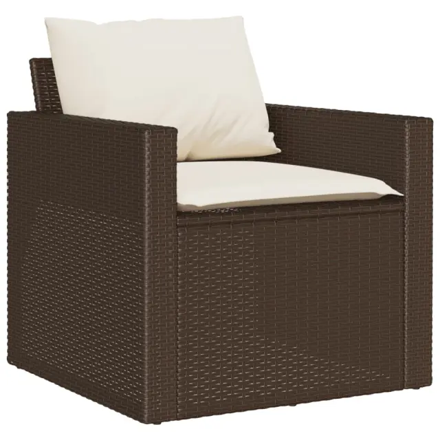 Ta vrtna sedežna garnitura je popoln dodatek za vaše dvorišče, teraso ali verando, saj zagotavlja udoben in vabljiv prostor za klepet z družino in prijatelji ali preprosto za sprostitev in uživanje na prostem. Vzdržljiv material: PE ratan, znan tudi kot poli ratan, je močan sintetični material, ki zahteva malo vzdrževanja in je videti kot naravni ratan. Je lahek, enostaven za čiščenje in se zaradi svoje vzdržljivosti in odpornosti na vremenske vplive pogosto uporablja za zunanje pohištvo.Udobno sedenje: To zunanje pohištvo z debelo oblazinjenimi blazinami zagotavlja udobno sedenje.Prevleko je mogoče odstraniti in oprati: Te sedežne blazine imajo odstranljive prevleke za lažje pranje in vzdrževanje.Robusten in stabilen okvir: Prašno barvan jekleni okvir zagotavlja, da je vrtno pohištvo močno in stabilno za vsakodnevno uporabo na prostem.Modularna zasnova: Ta komplet zunanjega pohištva ima modularno zasnovo, zaradi česar je popolnoma prilagodljiv in enostaven za premikanje, tako da lahko zunanjo garnituro postavite kakor koli želite. Dobro je vedeti:Če želite, da vaše zunanje pohištvo ostane lepo, vam priporočamo, da ga zaščitite z vodoodporno prevleko.Maksimalna nosilnost (na sedež): 110 kgUV-odpornoPotrebno sestavljanje: DaKavč z naslonjali za roke:Barva: RjavaMaterial: PE ratan, jeklen okvir s prašnim premazomDimenzije: 68 x 68 x 68 cm (Š x G x V)Velikost sedišča: 54 x 63 cm (Š x G)Višina sedeža od tal: 39 cmVišina naslonjala za roke, merjena od tal: 56 cmŠirina naslonjala za roke: 8 cmStolček:Barva: RjavaMaterial: PE ratan, jeklen okvir s prašnim premazomDimenzije: 40 x 40 x 38 cm (Š x G x V)Blazina:Barva: Kremno belaMaterial prevleke: Tkanina (100 % poliester)Polnilo sedežne blazine: PenaPolnilo hrbtne blazine: bombažna vlaknaDimenzije sedežne blazine (kavč): 56 x 64 x 3 cm (Š x G x D)Dimenzije sedežne blazine (stolček): 40 x 40 x 3 cm (Š x G x D)Dimenzije hrbtne blazine: 56 x 36 x 12 cm (D × Š × D)Paket vsebuje:2 x Kavč z naslonjali za roke2 x Vrtni stolček2 x Blazina za hrbet4 x Sedežna blazina s snemljivo in pralno prevleko Največ 110 kg na sedež. Zavedajte se nevarnosti odprtega ognja in drugih virov močne vročine v bližini izdelka.