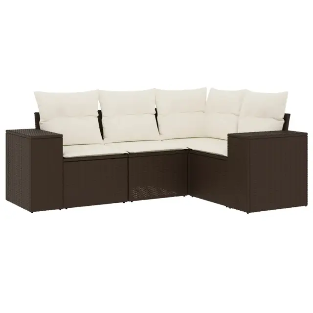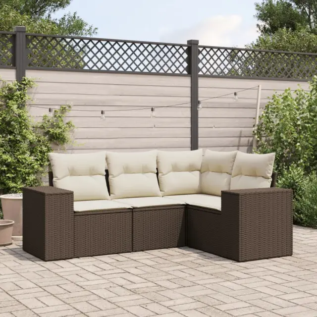 Ta vrtna sedežna garnitura je popoln dodatek za vaše dvorišče, teraso ali verando, saj zagotavlja udoben in vabljiv prostor za klepet z družino in prijatelji ali preprosto za sprostitev in uživanje na prostem. Vzdržljiv material: PE ratan, znan tudi kot poli ratan, je močan sintetični material, ki zahteva malo vzdrževanja in je videti kot naravni ratan. Je lahek, enostaven za čiščenje in se zaradi svoje vzdržljivosti in odpornosti na vremenske vplive pogosto uporablja za zunanje pohištvo.Udobno sedenje: To zunanje pohištvo z debelo oblazinjenimi blazinami zagotavlja udobno sedenje.Prevleko je mogoče odstraniti in oprati: Te sedežne blazine imajo odstranljive prevleke za lažje pranje in vzdrževanje.Modularna zasnova: Ta komplet zunanjega pohištva ima modularno zasnovo, zaradi česar je popolnoma prilagodljiv in enostaven za premikanje, tako da lahko zunanjo garnituro postavite kakor koli želite. Dobro je vedeti:Če želite, da vaše zunanje pohištvo ostane lepo, vam priporočamo, da ga zaščitite z vodoodporno prevleko.Maksimalna nosilnost (na sedež): 110 kgUV-odpornoPlastične nastavljive nogePotrebno sestavljanje: DaKotni sedež:Barva: RjavaMaterial: PE ratan, jeklen okvir s prašnim premazomDimenzije: 62 x 62 x 69 cm (Š x G x V)Velikost sedeža: 55 x 55 cm (Š x G)Višina sedeža, merjena od tal: 37 cmSrednji sedež:Barva: RjavaMaterial: PE ratan, jeklen okvir s prašnim premazomDimenzije: 55 x 62 x 69 cm (Š x G x V)Velikost sedeža: 55 x 55 cm (Š x G)Višina sedeža, merjena od tal: 37 cmKavč z naslonjali za roke:Barva: RjavaMaterial: PE ratan, jeklen okvir s prašnim premazomDimenzije: 83 x 62 x 69 cm (Š x G x V)Velikost sedeža: 55 x 55 cm (Š x G)Višina sedeža, merjena od tal: 37 cmVišina naslonjal za roke od tal: 55 cmŠirina naslona za roke: 27,5 cmBlazina:Barva: Kremno belaMaterial prevleke: Tkanina (100 % poliester)Polnilo sedežne blazine: PenaPolnilo hrbtne blazine: bombažna vlaknaDimenzije sedežne blazine: 55 x 55 x 3 cm (Š x G x D)Dimenzije hrbtne blazine: 55 x 45 x 13 cm (D x Š x D)Paket vsebuje:1 x Kotni sedež1 x Sredinski sedež2 x Kavč z naslonjali za roke5 x Blazina za hrbet4 x Sedežna blazina s snemljivo in pralno prevleko