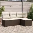 Ta vrtna sedežna garnitura je popoln dodatek za vaše dvorišče, teraso ali verando, saj zagotavlja udoben in vabljiv prostor za klepet z družino in prijatelji ali preprosto za sprostitev in uživanje na prostem. Vzdržljiv material: PE ratan, znan tudi kot poli ratan, je močan sintetični material, ki zahteva malo vzdrževanja in je videti kot naravni ratan. Je lahek, enostaven za čiščenje in se zaradi svoje vzdržljivosti in odpornosti na vremenske vplive pogosto uporablja za zunanje pohištvo.Udobno sedenje: Ta zunanji komplet pohištva z debelo oblazinjenimi blazinami zagotavlja udobno sedenje.Prevleko je mogoče odstraniti in oprati: Te sedežne blazine imajo odstranljive prevleke za lažje pranje in vzdrževanje.Modularna zasnova: Ta komplet zunanjega pohištva ima modularno zasnovo, zaradi česar je popolnoma prilagodljiv in enostaven za premikanje, tako da lahko zunanjo garnituro postavite kakor koli želite. Dobro je vedeti:Če želite, da vaše zunanje pohištvo ostane lepo, vam priporočamo, da ga zaščitite z vodoodporno prevleko.Maksimalna nosilnost (na sedež): 110 kgUV-odpornoPlastične nastavljive nogePotrebno sestavljanje: DaKotni sedež:Barva: RjavaMaterial: PE ratan, jeklen okvir s prašnim premazomDimenzije: 62 x 62 x 69 cm (Š x G x V)Velikost sedeža: 55 x 55 cm (Š x G)Višina sedeža, merjena od tal: 37 cmSrednji sedež:Barva: RjavaMaterial: PE ratan, jeklen okvir s prašnim premazomDimenzije: 55 x 62 x 69 cm (Š x G x V)Velikost sedeža: 55 x 55 cm (Š x G)Višina sedeža, merjena od tal: 37 cmVrtni stolček:Barva: RjavaMaterial: PE ratan, jeklen okvir s prašnim premazomDimenzije: 55 x 55 x 37 cm (Š x G x V)Blazina:Barva: Kremno belaMaterial prevleke: Tkanina (100 % poliester)Polnilo sedežne blazine: PenaPolnilo hrbtne blazine: bombažna vlaknaDimenzije sedežne blazine: 55 x 55 x 3 cm (Š x G x D)Dimenzije hrbtne blazine: 55 x 45 x 13 cm (D x Š x D) Paket vsebuje:1 x Vrtni stolček1 x Kotni sedež2 x Sredinski sedež4 x Blazina za hrbet4 x Sedežna blazina s snemljivo in pralno prevleko