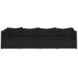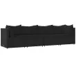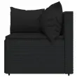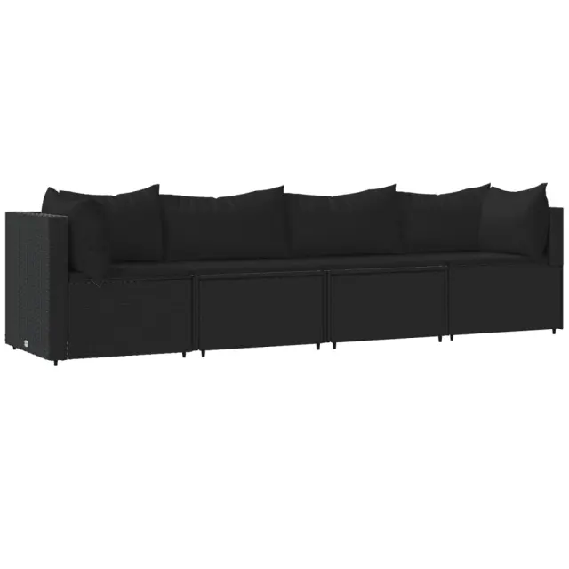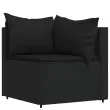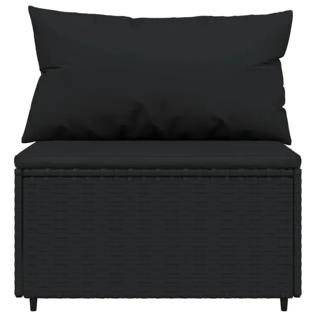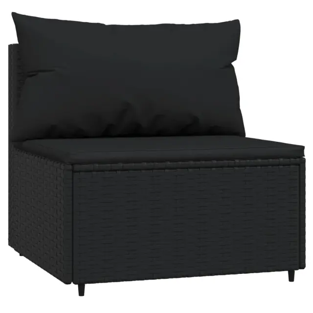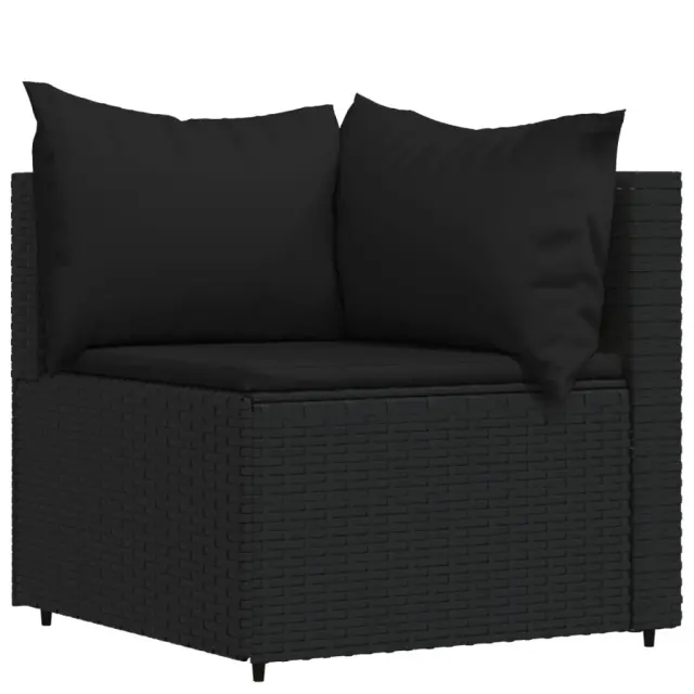 Ta trendovska vrtna sedežna garnitura z elegantno in sodobno zasnovo je odlična izbira za obedovanje ali sprostitev na vašem vrtu. Vremensko odporen material: PE ratan, znan tudi kot poli ratan, je odporen na vremenske vplive in enostaven za čiščenje. Na zunaj ostane lep dolgo časa. Ponuja odlično kakovost, priročnost in estetski videz.Vzdržljiv okvir: Prašno premazan jeklen okvir zagotavlja trdnost zunanje sedežne garniture za vsakodnevno uporabo na prostem.Modularna zasnova: Vrtna sedežna garnitura je prilagodljiva in enostavna za premikanje, zato jo lahko kombinirate z drugimi modularnimi segmenti iz spletne trgovine in ustvarite svoj oseben sestav vrtne sedežne garniture!Udobna izkušnja sedenja: Naslonjalo za hrbet zagotavlja dodatno udobje pri sedenju na vrtnem kavču. Poleg tega debelo podložene blazine zagotavljajo udobje med sedenjem. Dobro je vedeti:Za čim lažjo montažo je vsakemu izdelku priložen priročnik. Opomba:Izdelek je zasnovan samo za uporabo na prostem. Ne shranjujte ga v zaprtih prostorih.Če želite, da vaše zunanje pohištvo ostane lepo, vam priporočamo, da ga zaščitite z vodoodporno prevleko.Barva: ČrnaBarva blazine: ČrnaMaterial: PE ratan, jeklo s prašnim premazom, blago (100 % poliester)Polnilo: Pena, bombažna vlaknaKotni kavč:Dimenzije (vsak): 63 x 63 x 57,5 cm (Š x G x V)Velikost sedeža: 55 x 55 cm (Š x G)Višina sedeža, merjena od tal: 31 cmDimenzije sedežne blazine: 55 x 55 x 3 cm (Š x G x D)Velikost blazine (velika): 61 x 38 cm (Š x G)Velikost blazine (majhna): 46 x 38 cm (Š x G)Sredinski kavč:Dimenzije (vsak): 63 x 63 x 57,5 cm (Š x G x V)Velikost sedeža: 63 x 55 cm (Š x G)Višina sedeža, merjena od tal: 31 cmDimenzije sedežne blazine: 63 x 55 x 3 cm (Š x G x D)Velikost vzglavnika: 68 x 37 cm (Š x G)Nastavljive nogePaket vsebuje:2 x Kotni kavč2 x Sredinski kavč4 x Blazina za sedež6 x Blazina Največ 110 kg na sedež.