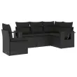 Seti vrtnega pohištva - Vrtna garnitura - Vrtni pohištvo set 5-delna z blazinami črn poli ratan