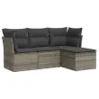 Seti vrtnega pohištva - Vrtna garnitura - Vrtni pohištvo set 4-delna z blazinami siv poli ratan