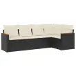Seti vrtnega pohištva - Vrtna garnitura - Vrtni pohištvo set 5-delna z blazinami črn poli ratan