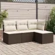 Ta vrtna sedežna garnitura je popoln dodatek za vaše dvorišče, teraso ali verando, saj zagotavlja udoben in vabljiv prostor za klepet z družino in prijatelji ali preprosto za sprostitev in uživanje na prostem. Vzdržljiv material: PE ratan, znan tudi kot poli ratan, je močan sintetični material, ki zahteva malo vzdrževanja in je videti kot naravni ratan. Je lahek, enostaven za čiščenje in se zaradi svoje vzdržljivosti in odpornosti na vremenske vplive pogosto uporablja za zunanje pohištvo.Funkcija shranjevanja z vodoodporno vrečo: Vsak vrtni sedež ima prostor za shranjevanje pod sedežem, skupaj z vodoodporno vrečo za shranjevanje blazin, igrač in drugih predmetov. Notranje vreče imajo zgornjo prevleko in jih je mogoče s pomočjo primenjal varno pritrditi na sedeže za dodatno varnost.Prevleko je mogoče odstraniti in oprati: Te sedežne blazine imajo odstranljive prevleke za lažje pranje in vzdrževanje.Modularna zasnova: Ta komplet zunanjega pohištva ima modularno zasnovo, zaradi česar je popolnoma prilagodljiv in enostaven za premikanje, tako da lahko zunanjo garnituro postavite kakor koli želite. Dobro je vedeti:Če želite, da vaše zunanje pohištvo ostane lepo, vam priporočamo, da ga zaščitite z vodoodporno prevleko.Celotne dimenzije kavča: 172 x 117 x 69 cm (Š x G x V)Dimenzije vodoodporne vreče: 55 x 53 x 34 cm (D x Š x V)Maksimalna nosilnost (na sedež): 110 kgUV-odpornoPlastične nastavljive nogePotrebno sestavljanje: DaKotni sedež:Barva: RjavaMaterial: PE ratan, jeklen okvir s prašnim premazomDimenzije: 62 x 62 x 69 cm (Š x G x V)Velikost sedeža: 55 x 55 cm (Š x G)Višina sedeža, merjena od tal: 37 cmSrednji sedež:Barva: RjavaMaterial: PE ratan, jeklen okvir s prašnim premazomDimenzije: 55 x 62 x 69 cm (Š x G x V)Velikost sedeža: 55 x 55 cm (Š x G)Višina sedeža, merjena od tal: 37 cmStolček za noge:Barva: RjavaMaterial: PE ratan, jeklen okvir s prašnim premazomDimenzije: 55 x 55 x 37 cm (Š x G x V)Blazina:Barva: Kremno belaMaterial prevleke: Tkanina (100 % poliester)Polnilo sedežne blazine: PenaPolnilo hrbtne blazine: bombažna vlaknaDimenzije sedežne blazine: 55 x 55 x 3 cm (Š x G x D)Dimenzije hrbtne blazine: 55 x 45 x 13 cm (D x Š x D)Paket vsebuje:1 x Kotni kavč s funkcijo shranjevanja z vodoodporno vrečo2 x Srednji kavč s funkcijo shranjevanja z vodoodporno vrečo1 x Vrtni stolček za noge4 x Blazina za hrbet4 x Sedežna blazina s snemljivo in pralno prevleko