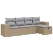 Ta vrtna sedežna garnitura je popoln dodatek za vaše dvorišče, teraso ali verando, saj zagotavlja udoben in vabljiv prostor za klepet z družino in prijatelji ali preprosto za sprostitev in uživanje na prostem. Vzdržljiv material: PE ratan, znan tudi kot poli ratan, je močan sintetični material, ki zahteva malo vzdrževanja in je videti kot naravni ratan. Je lahek, enostaven za čiščenje in se zaradi svoje vzdržljivosti in odpornosti na vremenske vplive pogosto uporablja za zunanje pohištvo.Udobno sedenje: To zunanje pohištvo z debelo oblazinjenimi blazinami zagotavlja udobno sedenje.Prevleko je mogoče odstraniti in oprati: Te sedežne blazine imajo odstranljive prevleke za lažje pranje in vzdrževanje.Robusten in stabilen okvir: Prašno barvan jekleni okvir zagotavlja, da je vrtno pohištvo močno in stabilno za vsakodnevno uporabo na prostem.Modularna zasnova: Ta komplet zunanjega pohištva ima modularno zasnovo, zaradi česar je popolnoma prilagodljiv in enostaven za premikanje, tako da lahko zunanjo garnituro postavite kakor koli želite. Dobro je vedeti:Če želite, da vaše zunanje pohištvo ostane lepo, vam priporočamo, da ga zaščitite z vodoodporno prevleko.Maksimalna nosilnost (na sedež): 110 kgUV-odpornoPotrebno sestavljanje: DaSrednji sedež:Barva: Mešano bežMaterial: PE ratan, jeklen okvir s prašnim premazomDimenzije: 55 x 62 x 69 cm (Š x G x V)Velikost sedeža: 55 x 55 cm (Š x G)Višina sedeža, merjena od tal: 37 cmKavč z naslonjali za roke:Barva: Mešano bežMaterial: PE ratan, jeklen okvir s prašnim premazomDimenzije: 83 x 62 x 69 cm (Š x G x V)Velikost sedeža: 55 x 55 cm (Š x G)Višina sedeža, merjena od tal: 37 cmVišina naslonjal za roke od tal: 55 cmStolček za noge:Barva: Mešano bežMaterial: PE ratan, jeklen okvir s prašnim premazomDimenzije: 55 x 55 x 37 cm (Š x G x V)Velikost sedeža: 55 x 55 cm (Š x G)Višina sedeža, merjena od tal: 37 cmBlazina:Barva: Svetlo sivaMaterial prevleke: Tkanina (100 % poliester)Polnilo sedežne blazine: PenaPolnilo hrbtne blazine: bombažna vlaknaDimenzije sedežne blazine: 55 x 55 x 3 cm (Š x G x D)Dimenzije hrbtne blazine: 55 x 45 x 13 cm (D x Š x D)Paket vsebuje:2 x Sredinski sedež2 x Kavč z naslonjali za roke1 x Stolček za noge5 x Blazina za hrbet5 x Sedežna blazina s snemljivo pralno prevleko