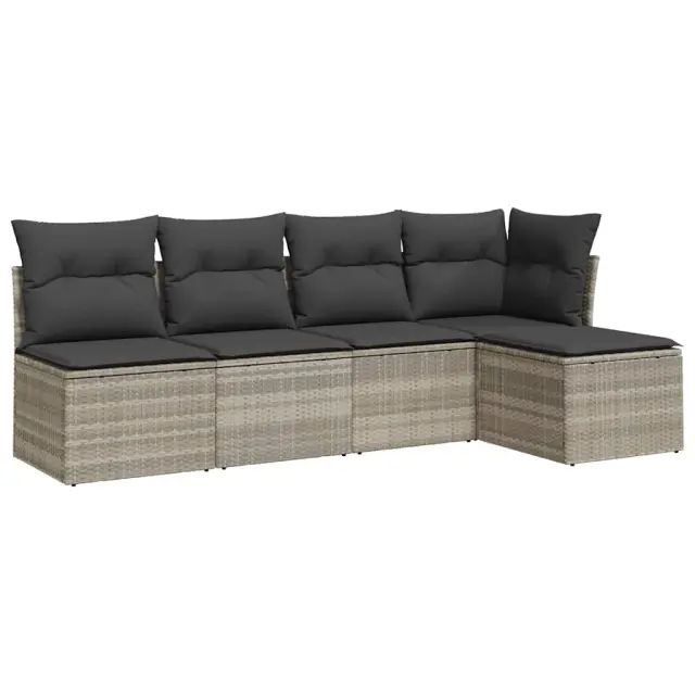 Ta vrtna sedežna garnitura je popoln dodatek za vaše dvorišče, teraso ali verando, saj zagotavlja udoben in vabljiv prostor za klepet z družino in prijatelji ali preprosto za sprostitev in uživanje na prostem. Vzdržljiv material: PE ratan, znan tudi kot poli ratan, je močan sintetični material, ki zahteva malo vzdrževanja in je videti kot naravni ratan. Je lahek, enostaven za čiščenje in se zaradi svoje vzdržljivosti in odpornosti na vremenske vplive pogosto uporablja za zunanje pohištvo.Udobno sedenje: Ta zunanji komplet pohištva z debelo oblazinjenimi blazinami zagotavlja udobno sedenje.Prevleko je mogoče odstraniti in oprati: Te sedežne blazine imajo odstranljive prevleke za lažje pranje in vzdrževanje.Modularna zasnova: Ta komplet zunanjega pohištva ima modularno zasnovo, zaradi česar je popolnoma prilagodljiv in enostaven za premikanje, tako da lahko zunanjo garnituro postavite kakor koli želite. Dobro je vedeti:Če želite, da vaše zunanje pohištvo ostane lepo, vam priporočamo, da ga zaščitite z vodoodporno prevleko.Maksimalna nosilnost (na sedež): 110 kgUV-odpornoPlastične nastavljive nogePotrebno sestavljanje: DaKotni sedež:Barva: Svetlo sivaMaterial: PE ratan, jeklen okvir s prašnim premazomDimenzije: 62 x 62 x 69 cm (Š x G x V)Velikost sedeža: 55 x 55 cm (Š x G)Višina sedeža, merjena od tal: 37 cmSrednji sedež:Barva: Svetlo sivaMaterial: PE ratan, jeklen okvir s prašnim premazomDimenzije: 55 x 62 x 69 cm (Š x G x V)Velikost sedeža: 55 x 55 cm (Š x G)Višina sedeža, merjena od tal: 37 cmVrtni stolček:Barva: Svetlo sivaMaterial: PE ratan, jeklen okvir s prašnim premazomDimenzije: 55 x 55 x 37 cm (Š x G x V)Blazina:Barva: Temno sivaMaterial prevleke: Tkanina (100 % poliester)Polnilo sedežne blazine: PenaPolnilo hrbtne blazine: bombažna vlaknaDimenzije sedežne blazine: 55 x 55 x 3 cm (Š x G x D)Dimenzije hrbtne blazine: 55 x 45 x 13 cm (D x Š x D) Paket vsebuje:1 x Vrtni stolček1 x Kotni sedež3 x Srednji sedež5 x Blazina za hrbet5 x Sedežna blazina s snemljivo pralno prevleko