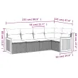 Ta vrtna sedežna garnitura je popoln dodatek za vaše dvorišče, teraso ali verando, saj zagotavlja udoben in vabljiv prostor za klepet z družino in prijatelji ali preprosto za sprostitev in uživanje na prostem. Vzdržljiv material: PE ratan, znan tudi kot poli ratan, je močan sintetični material, ki zahteva malo vzdrževanja in je videti kot naravni ratan. Je lahek, enostaven za čiščenje in se zaradi svoje vzdržljivosti in odpornosti na vremenske vplive pogosto uporablja za zunanje pohištvo.Funkcija shranjevanja z vodoodporno torbo: Vrtno pohištvo ima pod sedežem prostor za shranjevanje, opremljen z vodoodporno torbo za shranjevanje blazin, igrač in drugih stvari. Notranjo torbo je mogoče varno pritrditi na zunanje pohištvo s kavljem in zanko za večjo stabilnost.Prevleko je mogoče odstraniti in oprati: Te sedežne blazine imajo odstranljive prevleke za lažje pranje in vzdrževanje.Modularna zasnova: Ta komplet zunanjega pohištva ima modularno zasnovo, zaradi česar je popolnoma prilagodljiv in enostaven za premikanje, tako da lahko zunanjo garnituro postavite kakor koli želite. Dobro je vedeti:Če želite, da vaše zunanje pohištvo ostane lepo, vam priporočamo, da ga zaščitite z vodoodporno prevleko.Maksimalna nosilnost (na sedež): 110 kgUV-odpornoPlastične nastavljive nogePotrebno sestavljanje: DaKotni sedež:Barva: BežMaterial: PE ratan, jeklen okvir s prašnim premazomDimenzije: 62 x 62 x 69 cm (Š x G x V)Velikost sedeža: 55 x 55 cm (Š x G)Višina sedeža, merjena od tal: 37 cmSrednji sedež:Barva: BežMaterial: PE ratan, jeklen okvir s prašnim premazomDimenzije: 55 x 62 x 69 cm (Š x G x V)Velikost sedeža: 55 x 55 cm (Š x G)Višina sedeža, merjena od tal: 37 cmKavč z naslonjali za roke:Barva: BežMaterial: PE ratan, prašno premazano jeklo, trden akacijev les z oljnim premazomDimenzije: 59 x 62 x 69 cm (Š x G x V)Velikost sedeža: 55 x 55 cm (Š x G)Višina sedeža, merjena od tal: 37 cmVišina naslonjal za roke od tal: 55 cmBlazina:Barva: Svetlo sivaMaterial prevleke: Tkanina (100 % poliester)Polnilo sedežne blazine: PenaPolnilo hrbtne blazine: bombažna vlaknaDimenzije sedežne blazine: 55 x 55 x 3 cm (Š x G x D)Dimenzije hrbtne blazine: 55 x 45 x 13 cm (D x Š x D)Paket vsebuje:1 x Kotni kavč s funkcijo shranjevanja z vodoodporno vrečo2 x Srednji kavč s funkcijo shranjevanja z vodoodporno vrečo2 x Kavč s funkcijo shranjevanja z vodoodporno vrečo6 x Blazina za hrbet5 x Sedežna blazina s snemljivo pralno prevleko