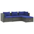 Sprostite se in uživajte v prostem času s to modno vrtno garnituro! Ustrezala bo vsem vašim potrebam. Trden okvir: Ta vrtna sedežna garnitura za teraso ima prašno premazan jeklen okvir in plastične krom noge, zato je zelo vzdržljiva.Vrhunski material: Vrtna sedežna garnitura je izdelana iz vodoodpornega PE ratana, zaradi česar je enostavna za čiščenje, trpežna in primerna za vsakodnevno uporabo na prostem.Modularen dizajn: Dodatno omogoča modularen dizajn, da komplet postavite v poljubno razporeditev ali ga kombinirate z drugimi modularnimi segmenti, ki ustrezajo vašim zahtevam.Udobne blazine in vzglavniki: Debelo oblazinjene in snemljive blazine in vzglavniki zagotavljajo optimalno udobje za sedenje na prostem. Opomba:Da bi podaljšali življenjsko dobo vašega zunanjega pohištva, vam priporočamo, da ga zaščitite z vodoodporno prevleko.Barva: SivaBarva blazine: Temno modraMaterial: PE ratan, prašno premazano jeklo, plastikaMaterial blazine/vzglavnika: Tekstil (100 % poliester)Kotni/Sredinski kavč:Dimenzije kotnega/sredinskega kavča (vsak): 70 x 70 x 60,5 cm (D x Š x V)Globina sedeža: 63 cmVišina sedeža, merjena od tal: 30 cmDimenzije blazine za kotni sedež: 63 x 63 x 6 cm (D x Š x D)Velikost hrbtne blazine kotnega kavča: 70 x 63 x 6 cm (D x Š)Dimenzije blazine za sredinski sedež: 70 x 63 x 6 cm (D x Š x D)Velikost hrbtne blazine sredinskega kavča: 70 x 40,5 cm (D x Š)Naslonjalo za noge:Dimenzije: 70 x 70 x 30 cm (D x Š x V)Dimenzije sedežne blazine: 70 x 70 x 6 cm (D x Š x D)Potrebno sestavljanje: DaPaket vsebuje:2 x Kotni kavč1 x Sredinski kavč1 x Stolček za noge4 x Blazina za sedež5 x Blazina za hrbet