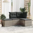 Ta vrtna sedežna garnitura je popoln dodatek za vaše dvorišče, teraso ali verando, saj zagotavlja udoben in vabljiv prostor za klepet z družino in prijatelji ali preprosto za sprostitev in uživanje na prostem. Vzdržljiv material: PE ratan, znan tudi kot poli ratan, je močan sintetični material, ki zahteva malo vzdrževanja in je videti kot naravni ratan. Je lahek, enostaven za čiščenje in se zaradi svoje vzdržljivosti in odpornosti na vremenske vplive pogosto uporablja za zunanje pohištvo.Udobno sedenje: Ta zunanji komplet pohištva z debelo oblazinjenimi blazinami zagotavlja udobno sedenje.Prevleko je mogoče odstraniti in oprati: Te sedežne blazine imajo odstranljive prevleke za lažje pranje in vzdrževanje.Modularna zasnova: Ta komplet zunanjega pohištva ima modularno zasnovo, zaradi česar je popolnoma prilagodljiv in enostaven za premikanje, tako da lahko zunanjo garnituro postavite kakor koli želite. Dobro je vedeti:Če želite, da vaše zunanje pohištvo ostane lepo, vam priporočamo, da ga zaščitite z vodoodporno prevleko.Maksimalna nosilnost (na sedež): 110 kgUV-odpornoPlastične nastavljive nogePotrebno sestavljanje: DaKotni sedež:Barva: Svetlo sivaMaterial: PE ratan, jeklen okvir s prašnim premazomDimenzije: 62 x 62 x 69 cm (Š x G x V)Velikost sedeža: 55 x 55 cm (Š x G)Višina sedeža, merjena od tal: 37 cmSrednji sedež:Barva: Svetlo sivaMaterial: PE ratan, jeklen okvir s prašnim premazomDimenzije: 55 x 62 x 69 cm (Š x G x V)Velikost sedeža: 55 x 55 cm (Š x G)Višina sedeža, merjena od tal: 37 cmVrtni stolček:Barva: Svetlo sivaMaterial: PE ratan, jeklen okvir s prašnim premazomDimenzije: 55 x 55 x 37 cm (Š x G x V)Blazina:Barva: Temno sivaMaterial prevleke: Tkanina (100 % poliester)Polnilo sedežne blazine: PenaPolnilo hrbtne blazine: bombažna vlaknaDimenzije sedežne blazine: 55 x 55 x 3 cm (Š x G x D)Dimenzije hrbtne blazine: 55 x 45 x 13 cm (D x Š x D) Paket vsebuje:2 x Vrtni stolček1 x Kotni sedež1 x Sredinski sedež3 x Blazina za hrbet4 x Sedežna blazina s snemljivo in pralno prevleko