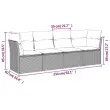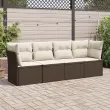 Ta vrtna sedežna garnitura je popoln dodatek za vaše dvorišče, teraso ali verando, saj zagotavlja udoben in vabljiv prostor za klepet z družino in prijatelji ali preprosto za sprostitev in uživanje na prostem. Vzdržljiv material: PE ratan, znan tudi kot poli ratan, je močan sintetični material, ki zahteva malo vzdrževanja in je videti kot naravni ratan. Je lahek, enostaven za čiščenje in se zaradi svoje vzdržljivosti in odpornosti na vremenske vplive pogosto uporablja za zunanje pohištvo.Udobno sedenje: Ta zunanji komplet pohištva z debelo oblazinjenimi blazinami zagotavlja udobno sedenje.Prevleko je mogoče odstraniti in oprati: Te sedežne blazine imajo odstranljive prevleke za lažje pranje in vzdrževanje.Modularna zasnova: Ta komplet zunanjega pohištva ima modularno zasnovo, zaradi česar je popolnoma prilagodljiv in enostaven za premikanje, tako da lahko zunanjo garnituro postavite kakor koli želite. Dobro je vedeti:Če želite, da vaše zunanje pohištvo ostane lepo, vam priporočamo, da ga zaščitite z vodoodporno prevleko.Dimenzije kavča: 234 x 62 x 69 cm (Š x G x V)Maksimalna nosilnost (na sedež): 110 kgUV-odpornoPlastične nastavljive nogePotrebno sestavljanje: DaKotni sedež:Barva: RjavaMaterial: PE ratan, jeklen okvir s prašnim premazomDimenzije: 62 x 62 x 69 cm (Š x G x V)Velikost sedeža: 55 x 55 cm (Š x G)Višina sedeža, merjena od tal: 37 cmSrednji sedež:Barva: RjavaMaterial: PE ratan, jeklen okvir s prašnim premazomDimenzije: 55 x 62 x 69 cm (Š x G x V)Velikost sedeža: 55 x 55 cm (Š x G)Višina sedeža, merjena od tal: 37 cmBlazina:Barva: Kremno belaMaterial prevleke: Tkanina (100 % poliester)Polnilo sedežne blazine: PenaPolnilo hrbtne blazine: bombažna vlaknaDimenzije sedežne blazine: 55 x 55 x 3 cm (Š x G x D)Dimenzije hrbtne blazine: 55 x 45 x 13 cm (D x Š x D)Paket vsebuje:2 x Kotni sedež2 x Sredinski sedež6 x Blazina za hrbet4 x Sedežna blazina s snemljivo in pralno prevleko