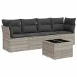 Ta vrtna sedežna garnitura je popoln dodatek za vaše dvorišče, teraso ali verando, saj zagotavlja udoben in vabljiv prostor za klepet z družino in prijatelji ali preprosto za sprostitev in uživanje na prostem. Vzdržljiv material: PE ratan, znan tudi kot poli ratan, je močan sintetični material, ki zahteva malo vzdrževanja in je videti kot naravni ratan. Je lahek, enostaven za čiščenje in se zaradi svoje vzdržljivosti in odpornosti na vremenske vplive pogosto uporablja za zunanje pohištvo.Udobno sedenje: Ta zunanji komplet pohištva z debelo oblazinjenimi blazinami zagotavlja udobno sedenje.Prevleko je mogoče odstraniti in oprati: Te sedežne blazine imajo odstranljive prevleke za lažje pranje in vzdrževanje.Steklena mizna plošča: Površina zunanje mize je izdelana iz močnega in trpežnega kaljenega stekla, kar omogoča enostavno čiščenje z vlažno krpo in vašemu zunanjemu prostoru doda pridih elegance.Modularna zasnova: Ta komplet zunanjega pohištva ima modularno zasnovo, zaradi česar je popolnoma prilagodljiv in enostaven za premikanje, tako da lahko zunanjo garnituro postavite kakor koli želite. Dobro je vedeti:Če želite, da vaše zunanje pohištvo ostane lepo, vam priporočamo, da ga zaščitite z vodoodporno prevleko.Dimenzije kavča: 234 x 62 x 69 cm (Š x G x V)Maksimalna nosilnost (na sedež): 110 kgUV-odpornoPlastične nastavljive nogePotrebno sestavljanje: DaKotni sedež:Barva: Svetlo sivaMaterial: PE ratan, jeklen okvir s prašnim premazomDimenzije: 62 x 62 x 69 cm (Š x G x V)Velikost sedeža: 55 x 55 cm (Š x G)Višina sedeža, merjena od tal: 37 cmSrednji sedež:Barva: Svetlo sivaMaterial: PE ratan, jeklen okvir s prašnim premazomDimenzije: 55 x 62 x 69 cm (Š x G x V)Velikost sedeža: 55 x 55 cm (Š x G)Višina sedeža, merjena od tal: 37 cmMiza:Barva: Svetlo sivaMaterial: PE ratan, jeklo s prašnim premazom, kaljeno stekloDimenzije: 55 x 55 x 37 cm (Š x G x V)Blazina:Barva: Temno sivaMaterial prevleke: Tkanina (100 % poliester)Polnilo sedežne blazine: PenaPolnilo hrbtne blazine: bombažna vlaknaDimenzije sedežne blazine: 55 x 55 x 3 cm (Š x G x D)Dimenzije hrbtne blazine: 55 x 45 x 13 cm (D x Š x D)Paket vsebuje:1 x Vrtna miza2 x Kotni sedež2 x Sredinski sedež6 x Blazina za hrbet4 x Sedežna blazina s snemljivo in pralno prevleko