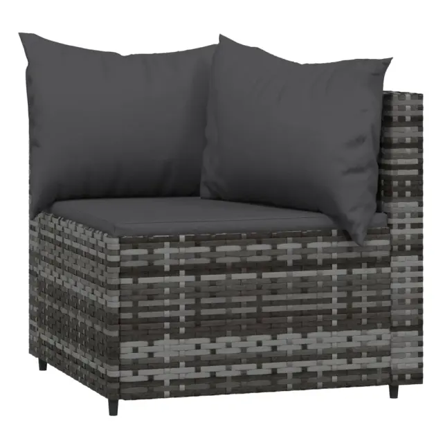Ta trendovska vrtna sedežna garnitura z elegantno in sodobno zasnovo je odlična izbira za obedovanje ali sprostitev na vašem vrtu. Vremensko odporen material: PE ratan, znan tudi kot poli ratan, je odporen na vremenske vplive in enostaven za čiščenje. Na zunaj ostane lep dolgo časa. Ponuja odlično kakovost, priročnost in estetski videz.Vzdržljiv okvir: Prašno premazan jeklen okvir zagotavlja trdnost zunanje sedežne garniture za vsakodnevno uporabo na prostem.Praktična mizna plošča: Gladka površina vrtne mize je izdelana iz kaljenega stekla, ki ga je enostavno očistiti z vlažno krpo. Poleg tega je robustna mizna plošča odlična za odlaganje hrane, pijače in okrasnih stvari.Modularna zasnova: Vrtna sedežna garnitura je prilagodljiva in enostavna za premikanje, zato jo lahko kombinirate z drugimi modularnimi segmenti iz spletne trgovine in ustvarite svoj oseben sestav vrtne sedežne garniture!Udobna izkušnja sedenja: Naslonjalo za hrbet zagotavlja dodatno udobje pri sedenju na vrtnem kavču. Poleg tega debelo podložene blazine zagotavljajo udobje med sedenjem. Dobro je vedeti:Za čim lažjo montažo je vsakemu izdelku priložen priročnik. Opomba:Izdelek je zasnovan samo za uporabo na prostem. Ne shranjujte ga v zaprtih prostorih.Če želite, da vaše zunanje pohištvo ostane lepo, vam priporočamo, da ga zaščitite z vodoodporno prevleko.Barva: SivaBarva blazin: AntracitnaMaterial: PE ratan, prašno barvano jeklo, blago (100 % poliester), kaljeno stekloPolnilo: Pena, bombažna vlaknaKotni kavč:Dimenzije (vsak): 63 x 63 x 57,5 cm (Š x G x V)Velikost sedeža: 55 x 55 cm (Š x G)Višina sedeža, merjena od tal: 31 cmDimenzije sedežne blazine: 55 x 55 x 3 cm (Š x G x D)Velikost blazine: 45 x 37 cm (Š x G)Klubska mizica:Dimenzije: 78 x 53 x 29,5 cm (Š x G x D)Debelina stekla: 4 mmNastavljive nogePaket vsebuje:2 x Kotni kavč2 x Sedežna blazina4 x Blazina1 x Klubska mizica Največ 110 kg na sedež.