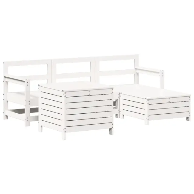 Seti vrtnega pohištva - Vrtna garnitura - Vrtni pohištvo set 5-delna bela trdna borovina