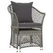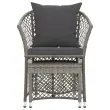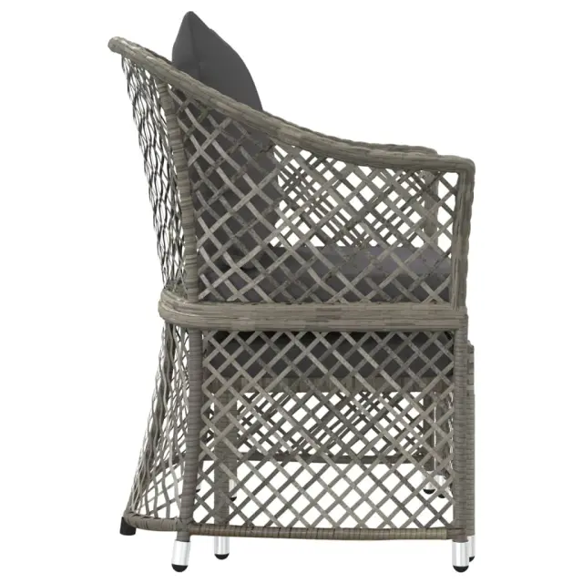 S to vrtno sedežno garnituro uživajte v prijetnem času v svojem zunanjem prostoru! Je odličen dodatek za vaš vrt in teraso, saj bo naredila trajen vtis! Vzdržljiv material: Poli ratan je izjemno odporen material, ki je vzdržljiv v različnih vremenskih razmerah. Prav tako potrebuje malo vzdrževanja.Stabilen okvir: Jeklen okvir zagotavlja trdnost in stabilnost zunanje sedežne garniture.Mehke blazine: Vrtni garnituri so priložene debele, odstranljive blazine, ki zagotavljajo največje udobje pri sedenju.Udobno naslonjalo za roke in hrbet: Zaobljena naslonjala za hrbet in roke omogočajo udoben počitek rok in hrbta.Praktični stolček: S priloženim stolčkom se lahko sprostite in dvignete noge. Prav tako lahko stolček postavite kamor koli glede na vaše želje. Dobro je vedeti:Za čim lažjo montažo je vsakemu izdelku priložen priročnik. Opomba:Če želite, da vaše zunanje pohištvo ostane lepo, vam priporočamo, da ga zaščitite z vodoodporno prevleko.Barva: SivaBarva blazin: Temno sivaMaterial: PE ratan, jekloStolček:Dimenzije: 42 x 43 x 36,5 cm (Š x G x V)Širina sedeža: 42 cmGlobina sedeža: 40,5 cmVišina sedeža, merjena od tal: 30 cmStol:Dimenzije: 65 x 54 x 84 cm (Š x G x V)Višina sedeža, merjena od tal: 42 cmOdprt pleten dizajnMaksimalna nosilnost (na sedež): 110 kgPaket vsebuje:1 x Stol1 x Stolček1 x Blazina za hrbet2 x Sedežna blazina