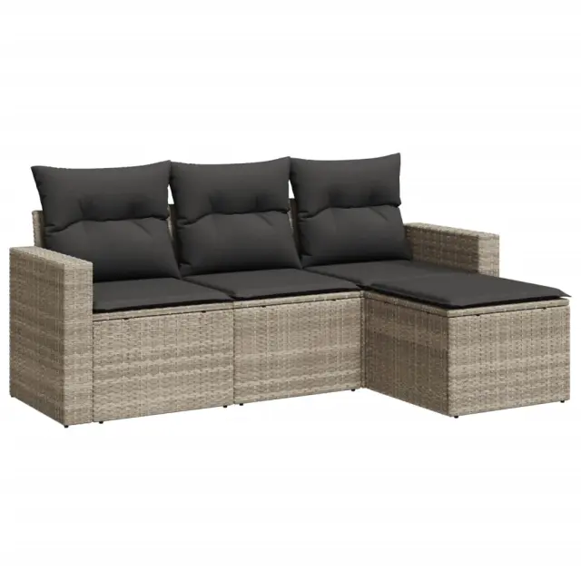 Ta vrtna sedežna garnitura je popoln dodatek za vaše dvorišče, teraso ali verando, saj zagotavlja udoben in vabljiv prostor za klepet z družino in prijatelji ali preprosto za sprostitev in uživanje na prostem. Vzdržljiv material: PE ratan, znan tudi kot poli ratan, je močan sintetični material, ki zahteva malo vzdrževanja in je videti kot naravni ratan. Je lahek, enostaven za čiščenje in se zaradi svoje vzdržljivosti in odpornosti na vremenske vplive pogosto uporablja za zunanje pohištvo.Udobno sedenje: To zunanje pohištvo z debelo oblazinjenimi blazinami zagotavlja udobno sedenje. Široki nasloni za roke so tudi priročen prostor za mobilni telefon, skodelice ali druge manjše predmete, da jih lahko zlahka dosežete.Prevleko je mogoče odstraniti in oprati: Te sedežne blazine imajo odstranljive prevleke za lažje pranje in vzdrževanje.Modularna zasnova: Ta komplet zunanjega pohištva ima modularno zasnovo, zaradi česar je popolnoma prilagodljiv in enostaven za premikanje, tako da lahko zunanjo garnituro postavite kakor koli želite. Dobro je vedeti:Če želite, da vaše zunanje pohištvo ostane lepo, vam priporočamo, da ga zaščitite z vodoodporno prevleko.Maksimalna nosilnost (na sedež): 110 kgUV-odpornoPlastične nastavljive nogePotrebno sestavljanje: DaKotni sedež:Barva: Svetlo sivaMaterial: PE ratan, jeklen okvir s prašnim premazomDimenzije: 65,5 x 62 x 69 cm (Š x G x V)Velikost sedeža: 55 x 55 cm (Š x G)Višina sedeža, merjena od tal: 37 cmVišina naslonjal za roke od tal: 55 cmŠirina naslonjala za roke: 10 cmSrednji sedež:Barva: Svetlo sivaMaterial: PE ratan, jeklen okvir s prašnim premazomDimenzije: 55 x 62 x 69 cm (Š x G x V)Velikost sedeža: 55 x 55 cm (Š x G)Višina sedeža, merjena od tal: 37 cmStolček:Barva: Svetlo sivaMaterial: PE ratan, jeklen okvir s prašnim premazomDimenzije: 55 x 55 x 37 cm (Š x G x V)Blazina:Barva: Temno sivaMaterial prevleke: Tkanina (100 % poliester)Polnilo sedežne blazine: PenaPolnilo hrbtne blazine: bombažna vlaknaDimenzije sedežne blazine: 55 x 55 x 3 cm (Š x G x D)Dimenzije hrbtne blazine: 55 x 45 x 13 cm (D x Š x D)Paket vsebuje:2 x Kotni sedež1 x Sredinski sedež1 x Stolček3 x Blazina za hrbet4 x Sedežna blazina s snemljivo in pralno prevleko