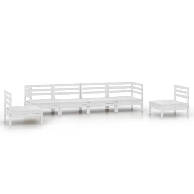Seti vrtnega pohištva - Vrtna garnitura - Vrtni pohištvo set 6-delna bela trdna borovina