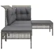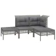 S to vrtno sedežno garnituro uživajte v prijetnem pitju kave v svojem zunanjem prostoru! Je odličen dodatek za vaš vrt in teraso, saj bo naredila trajen vtis! Vremensko odporen material: PE ratan, znan tudi kot poli ratan, je odporen na vremenske vplive in enostaven za čiščenje. Na zunaj ostane lep dolgo časa. Ponuja odlično kakovost, priročnost in estetski videz.Vzdržljiv okvir: Prašno premazani jekleni okvirji zagotavljajo trdnost zunanje sedežne garniture za vsakodnevno uporabo na prostem.Udobna izkušnja sedenja: Naslonjala za hrbet zagotavljajo dodatno udobje pri sedenju na garnituri za teraso. Poleg tega debelo podložene blazine zagotavljajo udobje med sedenjem. Opomba:Če želite, da vaše zunanje pohištvo ostane lepo, vam priporočamo, da ga zaščitite z vodoodporno prevleko.Vrtni kotni kavč:Barva: SivaMaterial: PE ratan, jeklen okvir s prašnim premazomDimenzije: 65 x 65 x 75 cm (Š x G x V)Širina sedeža: 55 cmGlobina sedeža: 55 cmVišina sedeža od tal: 32 cmMaksimalna nosilnost: 110 kgZasnova mrežnega tkanjaVrtni sredinski kavč:Barva: SivaMaterial: PE ratan, jeklen okvir s prašnim premazomDimenzije: 55 x 65 x 75 cm (Š x G x V)Širina sedeža: 55 cmGlobina sedeža: 55 cmVišina sedeža od tal: 32 cmMaksimalna nosilnost: 110 kgZasnova mrežnega tkanjaVrtni stolček za noge:Barva: SivaMaterial: PE ratan, jeklen okvir s prašnim premazomDimenzije: 55 x 55 x 32 cm (Š x G x V)Maksimalna nosilnost: 110 kgZasnova mrežnega tkanjaBlazina:Barva: Temno sivaMaterial: Blago (100 % poliester)Polnilo sedežne blazine: PenaPolnilo hrbtne blazine: Bombažna vlaknaDimenzije sedežne blazine: 55 x 55 x 3 cm (D x Š x D)Dimenzije hrbtne blazine (velika): 56 x 39 x 10 cm (D x Š x D)Dimenzije hrbtne blazine (majhna): 48 x 39 x 10 cm (D x Š x D)Potrebno sestavljanje: DaPaket vsebuje:1 x Vrtni kotni kavč1 x Vrtni srednji kavč2 x Vrtni stolček za noge4 x Blazina za sedež2 x Hrbtna blazina (velika)1 x Hrbtna blazina (majhna) Največ 110 kg na sedež. Zavedajte se nevarnosti odprtega ognja in drugih virov močne vročine v bližini izdelka.