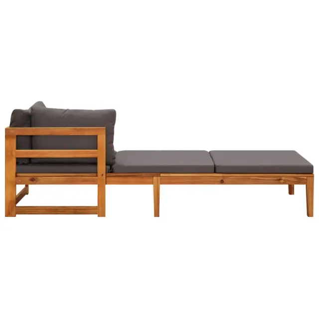 Ta lesena sedežna garnitura je odlična izbira za sproščanje in uživanje v lepem vremenu, dremanje ali klepetanje z vašo družino ali prijatelji. Ta brezčasna sedežna garnitura bo vaši verandi, terasi ali vrtu dodala rustikalen čar. Ta komplet zunanjega pohištva iz trdnega akacijevega lesa je vremensko odporen in zelo trpežen. V kombinaciji z debelo podloženimi blazinami ta sedežna garnitura za teraso zagotavlja najvišjo raven udobja. Naslone za roke ležalnika lahko postavite na levo ali desno, odvisno od vaših potreb. Sedežno lahko kombinirate tudi z drugimi modularnimi segmenti in tako ustvarite svojo lastno vrtno sedežno garnituro! Opomba: Če želite podaljšati življenjsko dobo svojega vrtnega pohištva, priporočamo redno čiščenje. Pohištva ne puščajte na prostem brez zaščite.Čiščenje: Uporabite blago milnico.Shranjevanje: Če je mogoče, shranite v hladnem in suhem notranjem prostoru. Če bo izdelek shranjen zunaj, ga zaščitite z vodoodpornim pokrivalom. Po dežju ali snegu odstranite odvečno vodo ali sneg z ravnih površin. Omogočite zadosten pretok zraka, da preprečite poškodbe povezane z vlago.Barva blazine: Temno sivaMaterial: Trden akacijev les z oljnim premazom, blago (100 % poliester)Dimenzije mize: 64 x 64 x 29 cm (D x Š x V)Debelina blazine: 6 cmDebelina vzglavnika: 12 cmKotni kavč:Dimenzije: 66 x 66 x 60 cm (D x Š x V)Višina sedeža, merjena od tal: 29 cmLežalnik:Dimenzije: 202 x 66 x 60 cm (D x Š x V)Višina sedeža, merjena od tal: 29 cmIma en naslon za rokeNaslonjalo za roke se lahko namesti na levo in desno stranPotrebno sestavljanje: DaPaket vsebuje:1 x Kotni kavč1 x Miza1 x Vrtni ležalnik4 x Vzglavnik3 x Blazina