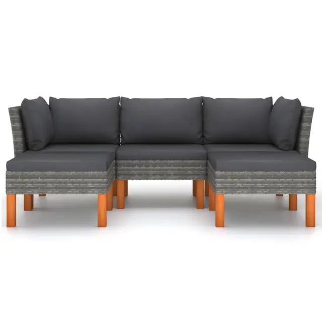 Seti vrtnega pohištva - Vrtna garnitura - Vrtni pohištvo set 5-delna z blazinami poli ratan siva