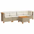 Ta vrtna sedežna garnitura je popoln dodatek za vaše dvorišče, teraso ali verando, saj zagotavlja udoben in vabljiv prostor za klepet z družino in prijatelji ali preprosto za sprostitev in uživanje na prostem. Vzdržljiv material: PE ratan, znan tudi kot poli ratan, je močan sintetični material, ki zahteva malo vzdrževanja in je videti kot naravni ratan. Je lahek, enostaven za čiščenje in se zaradi svoje vzdržljivosti in odpornosti na vremenske vplive pogosto uporablja za zunanje pohištvo.Udobno sedenje: To zunanje pohištvo z debelo oblazinjenimi blazinami zagotavlja udobno sedenje.Prevleko je mogoče odstraniti in oprati: Te sedežne blazine imajo odstranljive prevleke za lažje pranje in vzdrževanje.Stabilna mizna plošča, ki je enostavna za čiščenje: Ta vrtna miza ima ploščo iz akacijevega lesa, ki je čvrsta, vzdržljiva in jo je enostavno čistiti z vlažno krpo.Modularna zasnova: Ta komplet zunanjega pohištva ima modularno zasnovo, zaradi česar je popolnoma prilagodljiv in enostaven za premikanje, tako da lahko zunanjo garnituro postavite kakor koli želite. Dobro je vedeti:Če želite, da vaše zunanje pohištvo ostane lepo, vam priporočamo, da ga zaščitite z vodoodporno prevleko.Maksimalna nosilnost (na sedež): 110 kgUV-odpornoLesene nogePotrebno sestavljanje: DaKotni sedež:Barva: BežMaterial: PE ratan, jeklo s prašnim premazom, trden akacijev les z naravnim oljnim premazomDimenzije: 63,5 x 63,5 x 62 cm (Š x G x V)Velikost sedeža: 56 x 56 cm (Š x G)Višina sedeža, merjena od tal (brez blazine): 32 cmSrednji sedež:Barva: BežMaterial: PE ratan, jeklo s prašnim premazom, trden akacijev les z naravnim oljnim premazomDimenzije: 63,5 x 63,5 x 62 cm (Š x G x V)Velikost sedišča: 63 x 56 cm (Š x G)Višina sedeža, merjena od tal (brez blazine): 32 cmMiza:Barva: BežMaterial: PE ratan, jeklo s prašnim premazom, trden akacijev les z naravnim oljnim premazomDimenzije: 55 x 55 x 36 cm (D x Š x V)Blazina:Barva: Kremno belaMaterial prevleke: Tkanina (100 % poliester)Polnilo sedežne blazine: PenaPolnilo hrbtne blazine: bombažna vlaknaDimenzije sedežne blazine (kotna): 56,5 x 56,5 x 3 cm (Š x G x D)Dimenzije sedežne blazine (sredinska): 63,5 x 56,5 x 3 cm (Š x G x D)Dimenzije hrbtne blazine (kotna): 52 x 35 x 10 cm (D × Š × D)Dimenzije hrbtne blazine (sredinska): 63 x 35 x 10 cm (D x Š x D)Paket vsebuje:2 x Kotni sedež2 x Sredinski sedež1 x Vrtna miza6 x Blazina za hrbet4 x Sedežna blazina s snemljivo in pralno prevleko Maksimalna teža na sedež: 110 kg. Bodite pozorni na tveganje odprtega ognja in druge vire močne toplote v bližini izdelka.