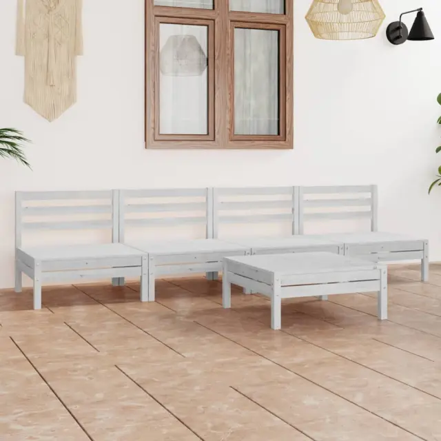 Seti vrtnega pohištva - Vrtna garnitura - Vrtni pohištvo set 5-delna bela trdna borovina