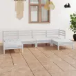 Ta lesena vrtna sedežna garnitura je idealna izbira za sproščanje in uživanje v lepem vremenu, za počitek ali pogovor z vašo družino ali prijatelji. Lesena sedežna garnitura ima brezčasno obliko iz palet, vaši terasi, vrtu ali dnevni sobi pa dodaja pridih rustikalnega čara. Ta sedežna garnitura za teraso, izdelana iz trdne borovine, je zelo vzdržljiva in odporna na vremenske vplive. Ta komplet pohištva ima trdno konstrukcijo in ne potrebuje veliko vzdrževanja. Poleg tega modularna zasnova omogoča poljubno postavitev kompleta po vašem okusu. Opomba: Da bi podaljšali življenjsko dobo vašega zunanjega pohištva, vam priporočamo, da ga zaščitite z vodoodporno prevleko.Barva: BelaMaterial: Trdna borovinaDimenzije kotnega / srednjega kavča: 63,5 x 63,5 x 62,5 cm (D x Š x V)Dimenzije mizice / stolčka: 63,5 x 63,5 x 28,5 cm (D x Š x V)Potrebno sestavljanje: DaPaket vsebuje:2 x Kotni kavč2 x Sredinski kavč2 x Mizica / stolček Največ 110 kg na sedež.
