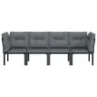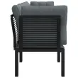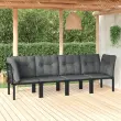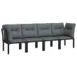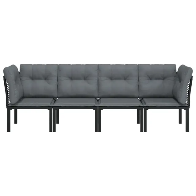 Elegantna in sodobna vrtna sedežna garnitura je popolna izbira za obedovanje ali sproščanje na vašem vrtu. Vremensko odporen material: PE ratan, znan tudi kot poli ratan, je odporen na vremenske vplive in enostaven za čiščenje. Na zunaj ostane lep dolgo časa. Ponuja odlično kakovost, priročnost in estetski videz. Trpežen in stabilen okvir: Prašno premazan jeklen okvir sedežne garniture zagotavlja trdnost in stabilnost.Modularna zasnova: Zunanja sedežna garnitura je prilagodljiva in enostavna za premikanje, zato jo lahko kombinirate z drugimi modularnimi segmenti iz spletne trgovine in ustvarite svoj osebni sestav vrtne sedežne garniture! Udobna izkušnja sedenja: Naslonjalo za hrbet zagotavlja dodatno udobje pri sedenju na stolu. Poleg tega debelo podložene blazine zagotavljajo udobje med sedenjem. Dobro je vedeti:Za čim lažjo montažo je vsakemu izdelku priložen priročnik.Opomba:Če želite, da vaše zunanje pohištvo ostane lepo, vam priporočamo, da ga zaščitite z vodoodporno prevleko.Kotni stol:Barva: ČrnaMaterial: PE ratan, tekstilen, prašno lakirano jekloDimenzije: 62 x 62 x 68 cm (Š x G x V)Velikost sedeža: 55 x 55 cm (Š x G)Višina sedeža, merjena od tal: 31 cmMaksimalna nosilnost (na sedež): 110 kgEnojni stol:Barva: ČrnaMaterial: PE ratan, tekstilen, prašno lakirano jekloDimenzije: 55 x 62 x 68 cm (Š x G x V)Velikost sedeža: 55 x 55 cm (Š x G)Višina sedeža, merjena od tal: 31 cmMaksimalna nosilnost (na sedež): 110 kgBlazina:Barva blazin: Temno sivaMaterial prevlek za blazine: Tkanina (100 % poliester)Polnilo sedežne blazine: PenaPolnilo hrbtne blazine: PP bombažDimenzije hrbtne blazine: 55 x 45 x 12 cm (D x Š x D)Dimenzije sedežne blazine: 55 x 55 x 3,5 cm (D x Š x D)Paket vsebuje:2 x Kotni stol2 x Enojni stol4 x Blazina za sedež6 x Blazina za hrbet Največ 110 kg na sedež. Zavedajte se nevarnosti odprtega ognja in drugih virov močne vročine v bližini izdelka.
