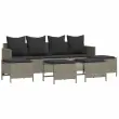 Seti vrtnega pohištva - Vrtna garnitura - Vrtni pohištvo set 5-delna z blazinami siv poli ratan
