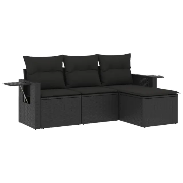 Ta vrtna sedežna garnitura je popoln dodatek za vaše dvorišče, teraso ali verando, saj zagotavlja udoben in vabljiv prostor za klepet z družino in prijatelji ali preprosto za sprostitev in uživanje na prostem. Vzdržljiv material: PE ratan, znan tudi kot poli ratan, je močan sintetični material, ki zahteva malo vzdrževanja in je videti kot naravni ratan. Je lahek, enostaven za čiščenje in se zaradi svoje vzdržljivosti in odpornosti na vremenske vplive pogosto uporablja za zunanje pohištvo. Priročna stranska mizica: To zunanje pohištvo ima zložljive stranske mizice s pnevmatsko vzmetjo na naslonjalih za roke, ki zagotavljajo priročen prostor za shranjevanje potrebščin na dosegu roke. Udobno sedenje: To zunanje pohištvo z debelo oblazinjenimi blazinami zagotavlja udobno sedenje. Prevleko je mogoče odstraniti in oprati: Te sedežne blazine imajo odstranljive prevleke za lažje pranje in vzdrževanje.Modularna zasnova: Ta komplet zunanjega pohištva ima modularno zasnovo, zaradi česar je popolnoma prilagodljiv in enostaven za premikanje, tako da lahko zunanjo garnituro postavite kakor koli želite. Dobro je vedeti:Če želite, da vaše zunanje pohištvo ostane lepo, vam priporočamo, da ga zaščitite z vodoodporno prevleko.Maksimalna nosilnost (na sedež): 110 kgUV-odpornoPotrebno sestavljanje: DaSrednji sedež:Barva: ČrnaMaterial: PE ratan, jeklen okvir s prašnim premazomDimenzije: 55 x 62 x 69 cm (Š x G x V)Velikost sedeža: 55 x 55 cm (Š x G)Višina sedeža, merjena od tal: 37 cmKavč z naslonjali za roke:Barva: ČrnaMaterial: PE ratan, jeklen okvir s prašnim premazomDimenzije: 62/85 x 62 x 69 cm (Š x G x V)Velikost sedeža: 55 x 55 cm (Š x G)Višina sedeža, merjena od tal: 37 cmVišina naslonjal za roke od tal: 55 cmVelikost stranske mizice: 25 x 23 cm (D x Š)Stolček za noge:Barva: ČrnaMaterial: PE ratan, jeklen okvir s prašnim premazomDimenzije: 55 x 55 x 37 cm (Š x G x V)Velikost sedeža: 55 x 55 cm (Š x G)Višina sedeža, merjena od tal: 37 cmBlazina:Barva: Črna Material prevleke: Tkanina (100 % poliester)Polnilo sedežne blazine: PenaPolnilo hrbtne blazine: bombažna vlaknaDimenzije sedežne blazine: 55 x 55 x 3 cm (Š x G x D)Dimenzije hrbtne blazine: 55 x 45 x 13 cm (D x Š x D)Paket vsebuje:1 x Sredinski sedež2 x Kavč z naslonjali za roke1 x Stolček za noge3 x Blazina za hrbet4 x Sedežna blazina s snemljivo in pralno prevleko