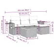 Ta vrtna sedežna garnitura je popoln dodatek za vaše dvorišče, teraso ali verando, saj zagotavlja udoben in vabljiv prostor za klepet z družino in prijatelji ali preprosto za sprostitev in uživanje na prostem. Vzdržljiv material: PE ratan, znan tudi kot poli ratan, je močan sintetični material, ki zahteva malo vzdrževanja in je videti kot naravni ratan. Je lahek, enostaven za čiščenje in se zaradi svoje vzdržljivosti in odpornosti na vremenske vplive pogosto uporablja za zunanje pohištvo.Funkcija shranjevanja z vodoodporno vrečo: Vsak vrtni sedež ima prostor za shranjevanje pod sedežem, skupaj z vodoodporno vrečo za shranjevanje blazin, igrač in drugih predmetov. Notranje vreče imajo zgornjo prevleko in jih je mogoče s pomočjo primenjal varno pritrditi na sedeže za dodatno varnost.Stabilna mizna plošča, ki je enostavna za čiščenje: Ta vrtna miza ima ploščo iz akacijevega lesa, ki je čvrsta, vzdržljiva in jo je enostavno čistiti z vlažno krpo.Priročna stranska mizica: To zunanje pohištvo ima zložljive stranske mizice s pnevmatsko vzmetjo na naslonjalih za roke, ki zagotavljajo priročen prostor za shranjevanje potrebščin na dosegu roke.Modularna zasnova: Ta komplet zunanjega pohištva ima modularno zasnovo, zaradi česar je popolnoma prilagodljiv in enostaven za premikanje, tako da lahko zunanjo garnituro postavite kakor koli želite. Dobro je vedeti:Če želite, da vaše zunanje pohištvo ostane lepo, vam priporočamo, da ga zaščitite z vodoodporno prevleko.Maksimalna nosilnost (na sedež): 110 kgUV-odpornoPotrebno sestavljanje: DaSrednji sedež:Barva: ČrnaMaterial: PE ratan, jeklen okvir s prašnim premazomDimenzije: 55 x 62 x 69 cm (Š x G x V)Velikost sedeža: 55 x 55 cm (Š x G)Višina sedeža, merjena od tal: 37 cmKavč z naslonjali za roke:Barva: ČrnaMaterial: PE ratan, jeklen okvir s prašnim premazomDimenzije: 62 x 62 x 69 cm (Š x G x V)Velikost sedeža: 55 x 55 cm (Š x G)Višina sedeža, merjena od tal: 37 cmVišina naslonjal za roke od tal: 55 cmStolček za noge:Barva: ČrnaMaterial: PE ratan, jeklen okvir s prašnim premazomDimenzije: 55 x 55 x 37 cm (Š x G x V)Velikost sedeža: 55 x 55 cm (Š x G)Višina sedeža, merjena od tal: 37 cmMiza:Barva: ČrnaMaterial: PE ratan, prašno premazano jeklo, trden akacijev les z oljnim premazomDimenzije: 55 x 55 x 37 cm (D x Š x V)Blazina:Barva: Kremno bela Material prevleke: Tkanina (100 % poliester)Polnilo sedežne blazine: PenaPolnilo hrbtne blazine: bombažna vlaknaDimenzije sedežne blazine: 55 x 55 x 3 cm (Š x G x D)Dimenzije hrbtne blazine: 55 x 45 x 13 cm (D x Š x D)Paket vsebuje:1 x Srednji kavč s funkcijo shranjevanja z vodoodporno vrečo2 x Kavč s funkcijo shranjevanja z vodoodporno vrečo1 x Stolček za noge s funkcijo shranjevanja z vodoodporno vrečo1 x Vrtna miza3 x Blazina za hrbet4 x Sedežna blazina s snemljivo in pralno prevleko