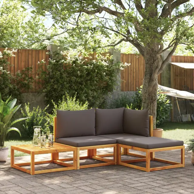 Seti vrtnega pohištva - Vrtna garnitura - Vrtni pohištvo set 4-delna z blazinami trden akacijev les