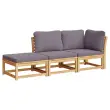 Ta lesena vrtna sedežna garnitura z blazinami ima eleganten dizajn in je odlična izbira za sprostitev in uživanje na vrtu ali terasi. Trden akacijev les: Trden akacijev les je čudovit naravni material. Akacijev les je tropski trden les, ki je gost, močan in vzdržljiv.Udobno sedenje: Naslonjalo za hrbet in mehko podložene blazine poskrbijo za udobnejše sedenje na vrtni garnituri.Zasnova iz letvic: Lesena sedežna garnitura z letvicami učinkovito preprečuje nabiranje vode, tako da sedež ostane suh in brez morebitnega gnitja.Modularna zasnova: Ta komplet zunanjega pohištva ima modularno zasnovo, zaradi česar je popolnoma prilagodljiv in enostaven za premikanje, tako da lahko zunanjo garnituro postavite kakor koli želite. Dobro je vedeti:Če želite, da vaše zunanje pohištvo ostane lepo, vam priporočamo, da ga zaščitite z vodoodporno prevleko.Kotni sedež:Material: Trden akacijev les z oljnim premazomDimenzije: 73 x 73 x 65 cm (Š x G x V)Velikost sedišča: 63 x 63 cm (Š x G)Višina sedeža, merjena od tal: 30 cmMaksimalna nosilnost: 110 kgSrednji sedež:Material: Trden akacijev les z oljnim premazomDimenzije: 63 x 73 x 65 cm (Š x G x V)Velikost sedišča: 63 x 63 cm (Š x G)Višina sedeža, merjena od tal: 30 cmMaksimalna nosilnost: 110 kgVrtni stolček za noge:Material: Trden akacijev les z oljnim premazomDimenzije: 63 x 63 x 30 cm (Š x G x V)Velikost sedišča: 63 x 63 cm (Š x G)Maksimalna nosilnost: 110 kgBlazina:Barva: Temno sivaMaterial prevleke: Tkanina (100 % poliester)Material polnila: PenaDimenzije blazine za sedež: 63 x 63 x 6 cm (D x Š x D)Dimenzije blazine za hrbet (L): 65 x 40 x 6 cm (D x Š x D)Dimenzije blazine za hrbet (S): 50 x 40 x 6 cm (D x Š x D)Potrebno sestavljanje: DaPaket vsebuje:1 x Kotni sedež1 x Sredinski sedež1 x Vrtni stolček za noge3 x Blazina za sedež3 x Blazina za hrbet Maksimalna teža na sedež: 110 kg. Bodite pozorni na tveganje odprtega ognja in druge vire močne toplote v bližini izdelka.
